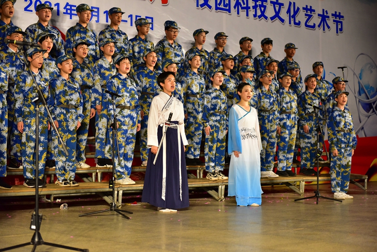 本次比赛以四位主持人的惊艳亮相正式拉开了帷幕。首先出场的是初一4班的同学们,他们激情演唱的《我们都是追梦人》点燃了全场观众的热情。《咱当兵的人》《从军行》《踏山河》等节目用气势磅礴的合唱唱出了人们慷慨报国的凌云壮志,博得了现场阵阵热烈的掌声;《我爱你中国》《精忠报国》《少年中国说》等节目用激情飞扬的歌声表达了同学们对祖国的炽热情感和为国奋斗的青春誓言,赢得全场观众的高度赞扬;《红旗飘飘》《红星闪闪》《国家》等节目用新颖独特的形式诠释了同学们对祖国的崇高敬意和对未来生活的美好心声,获得了师生们的一致好评……整场比赛,台上的同学们热情洋溢,歌声催人奋进,气势振奋人心,队形整齐,表演形式多样,精彩纷呈;台下观众掌声不断,专心聆听。