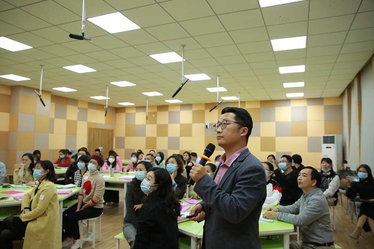 随后,家长们采用共创式团队学习的形式,在已阅读全书的前提下,各小组成员进行分章共读。在认真阅读和深刻讨论的基础上,组内成员将本章的中心思想和感悟凝练成关键词,并结合书中的金句与大家进行交流。在夏老师的鼓励下,家长们都积极参与到小组讨论和集体分享中来。在台上家长娓娓道来的时候,台下家长认真聆听,不时点头认同或是凝神深思,各种诚意满满、别具一格的“花式点赞”更是让他人感受到了分享的满足与快乐。