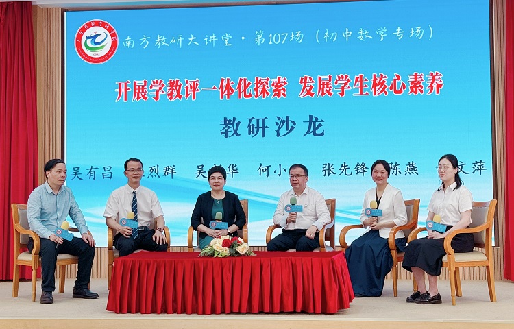教研沙龙由吴有昌教授主持,嘉宾们围绕如何积极“开展学教评一体化探索 发展学生核心素养”进行了深入研讨。在教研沙龙环节中,我校陈燕副校长分享了我校数学教师团队积极探索符合新课标理念的教学模式和评价方式,希望通过引入多元评价方式,更全面地评价学生学的活动,达到提升学生数学思维能力的目的。与此同时,关注学生个体差异,采用分层教学和个性化评价等策略,以满足不同学生的学习发展需求。