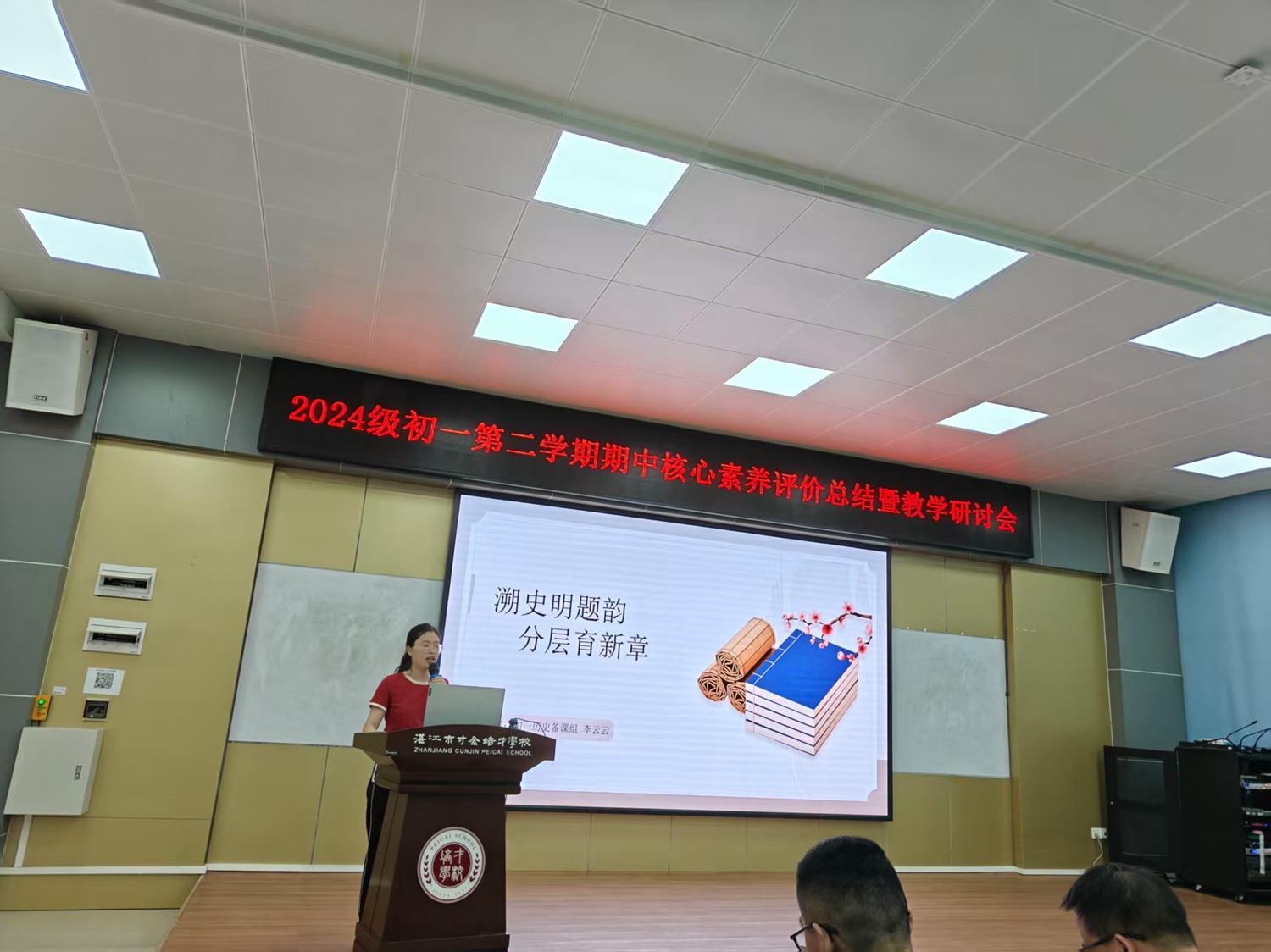 为全面总结教育教学经验,精准把脉学情,优化教学策略,初一年级于4月29日晚七点半在学术报告厅顺利召开第二学期期中核心素养评价总结暨教学研讨会。陈燕副校长及初一级全体老师出席了本次会议,会议由梁荣杰副级长主持。