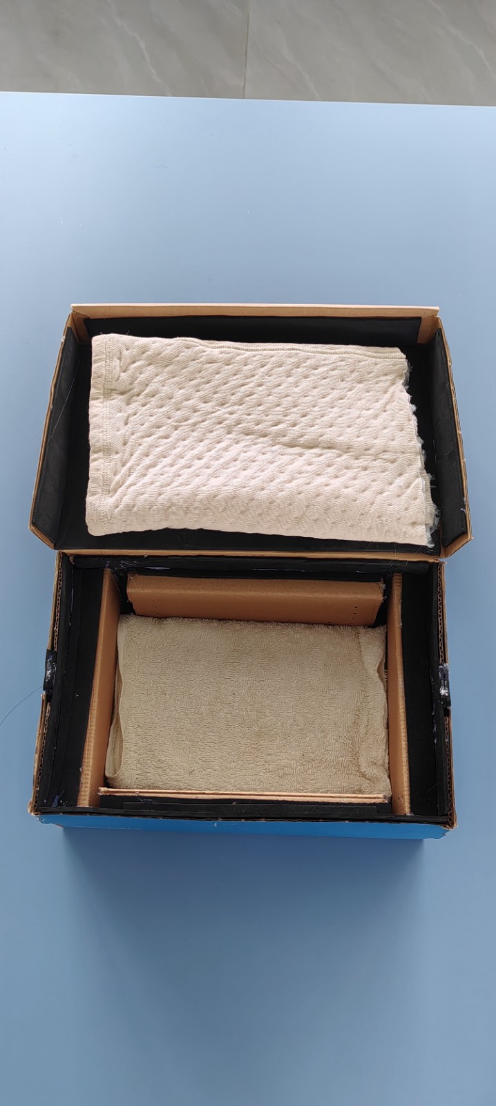 本次活动展现了变废为宝,科学原理融入实践的理念。为达成最佳的隔音效果,同学们各显神通。常见的旧报纸、废旧毛巾、快递缓冲泡沫、专业隔音棉等材料,成为了他们构建“静音堡垒”的秘密武器。在实践报告中,学生们清晰地阐释了其背后的科学原理:蓬松的毛巾和泡沫主要通过其多孔结构来吸收声波的能量,将声音“困”在材料内部的微小空隙中,从而减弱反射;而密度较大的纸板和多层结构,则能有效地阻挡声音的传播,起到隔断声波的作用。(部分模型内部如下图)