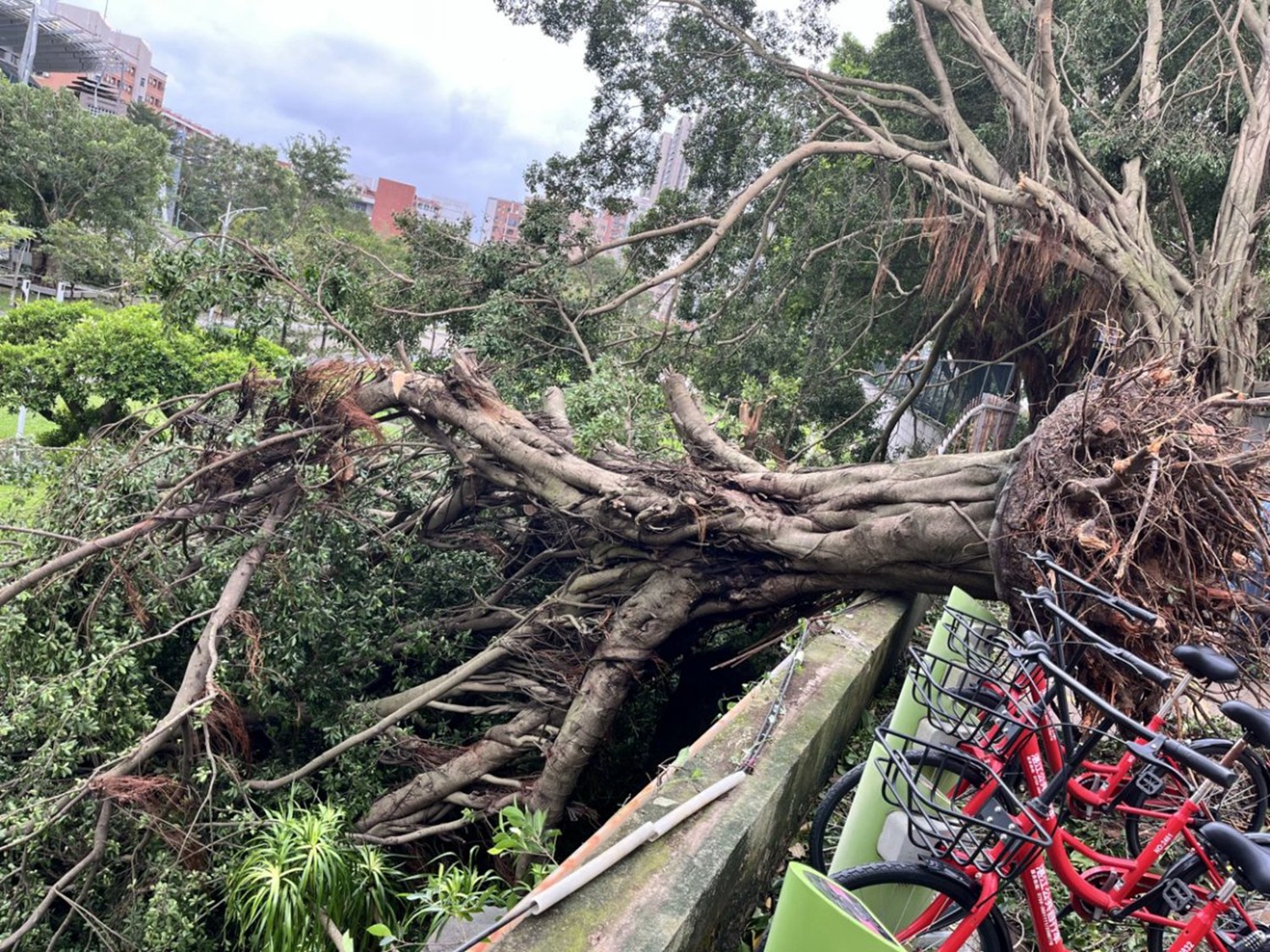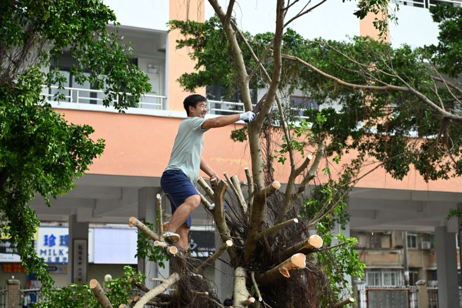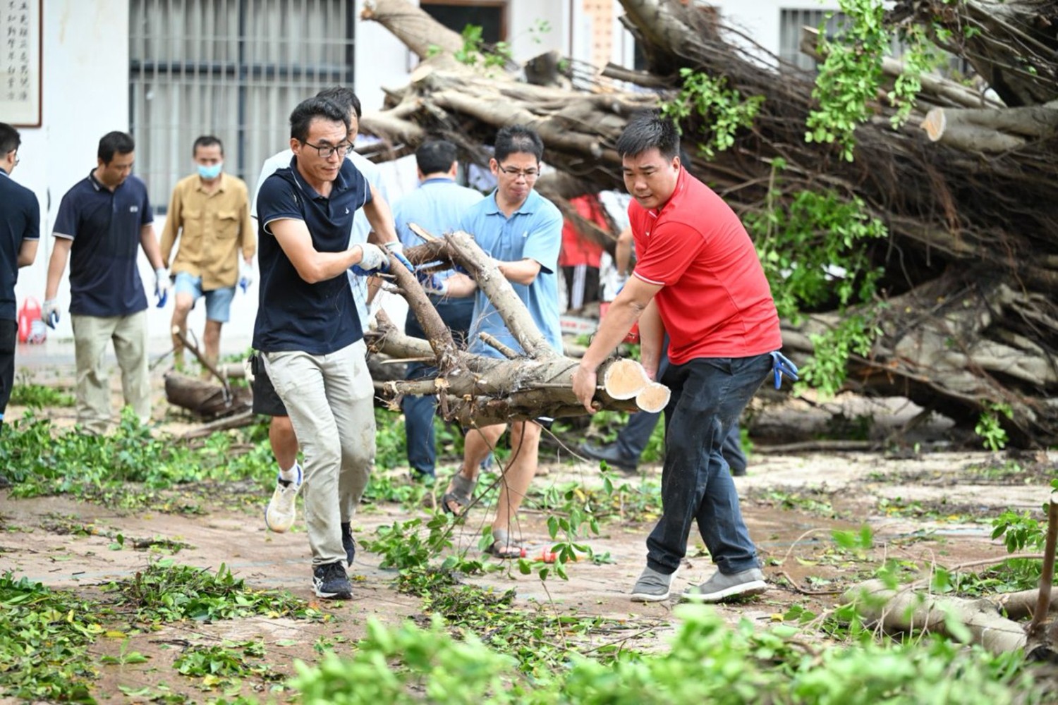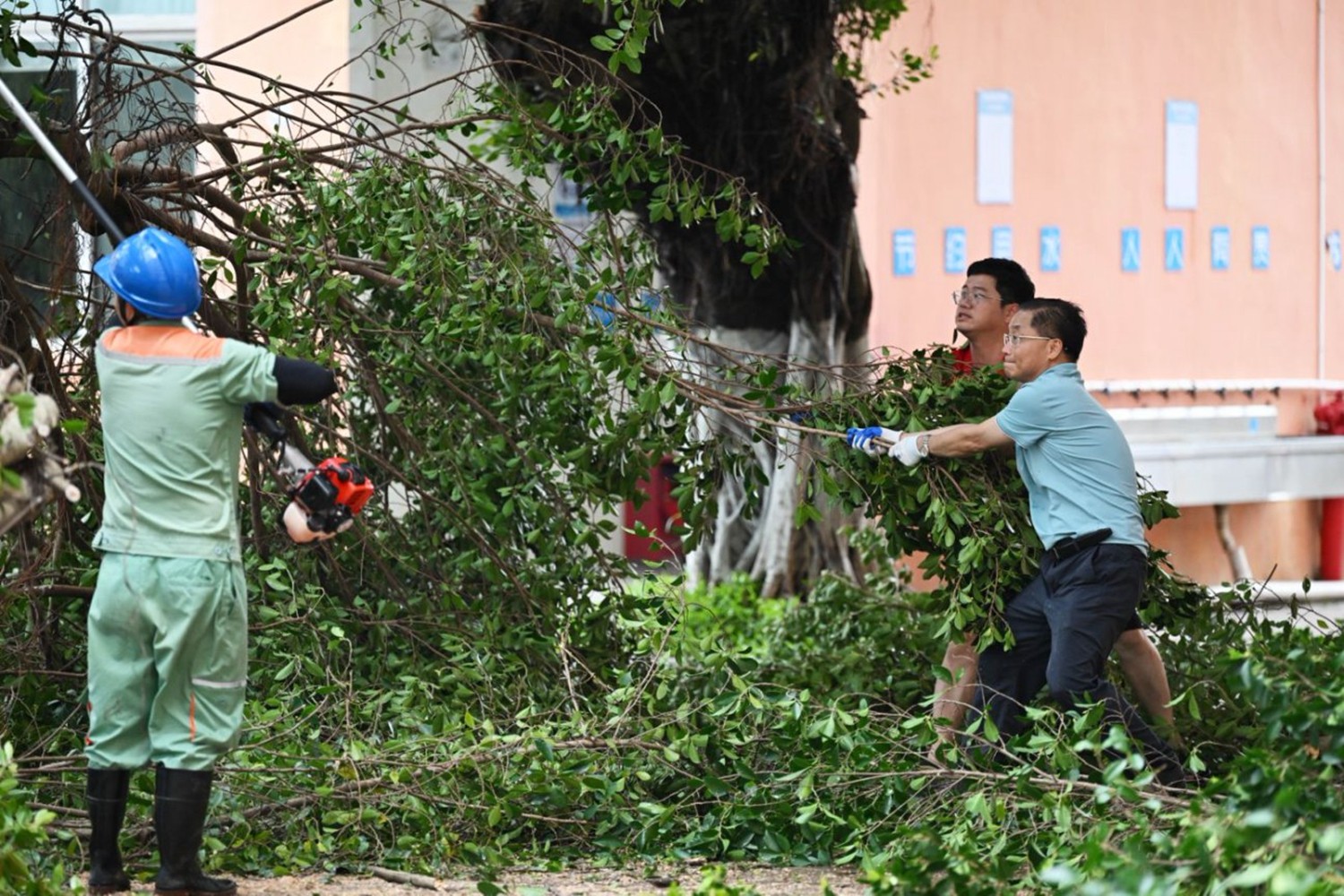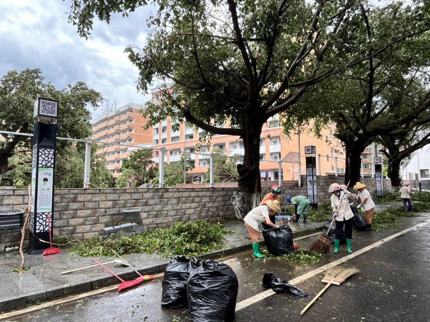 数棵大榕树被连根拔起,伏倒在地,如同大地的伤口。灾难留下的,不只是狼藉,更有挺身而出的身影。10月6日,从郑建忠总校长到后勤工作人员,近百人的队伍,从清晨到夜幕降临,砍、锯、扛、扫,用双手和汗水,为学校尽快恢复正常的教育教学秩序提供了保障。