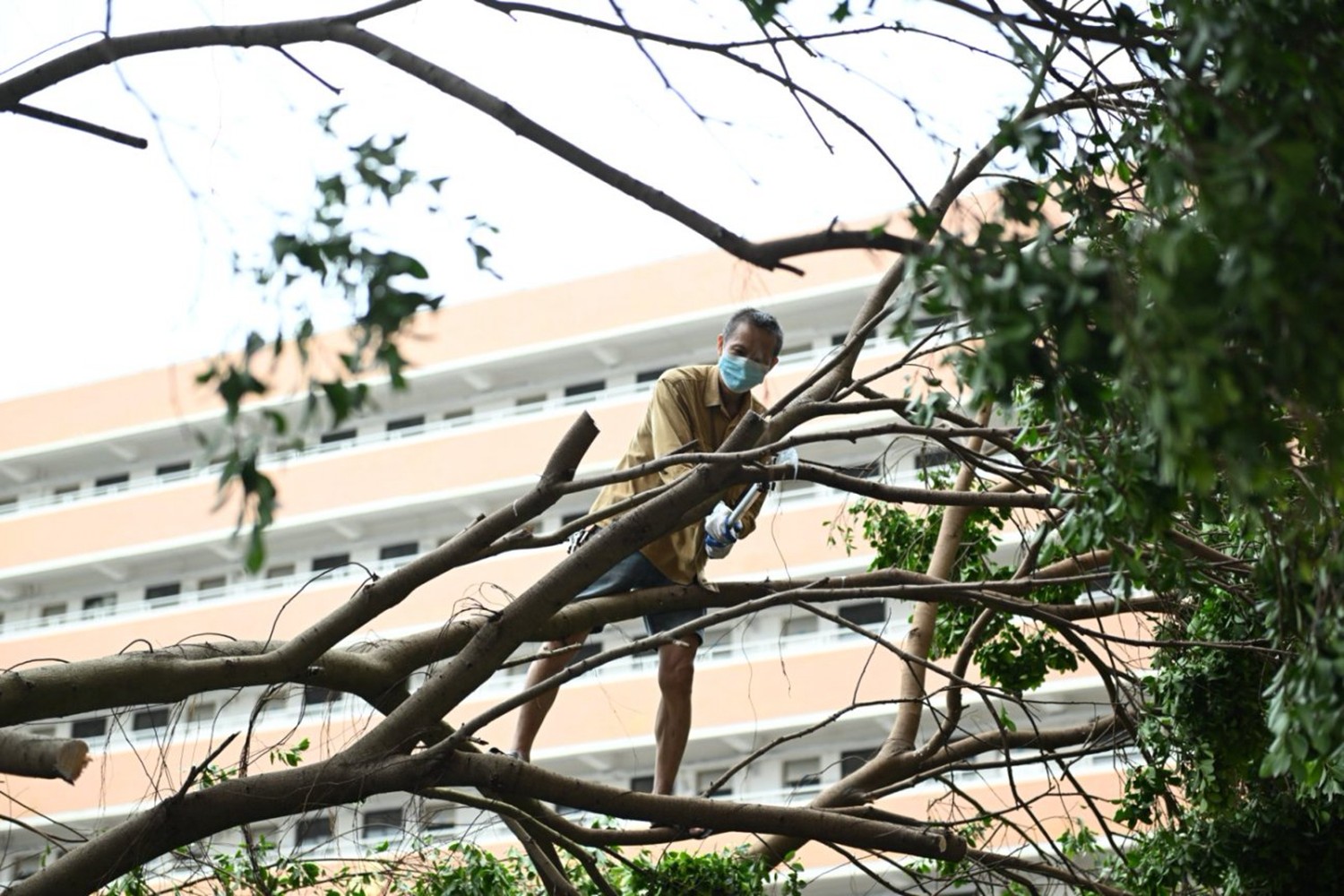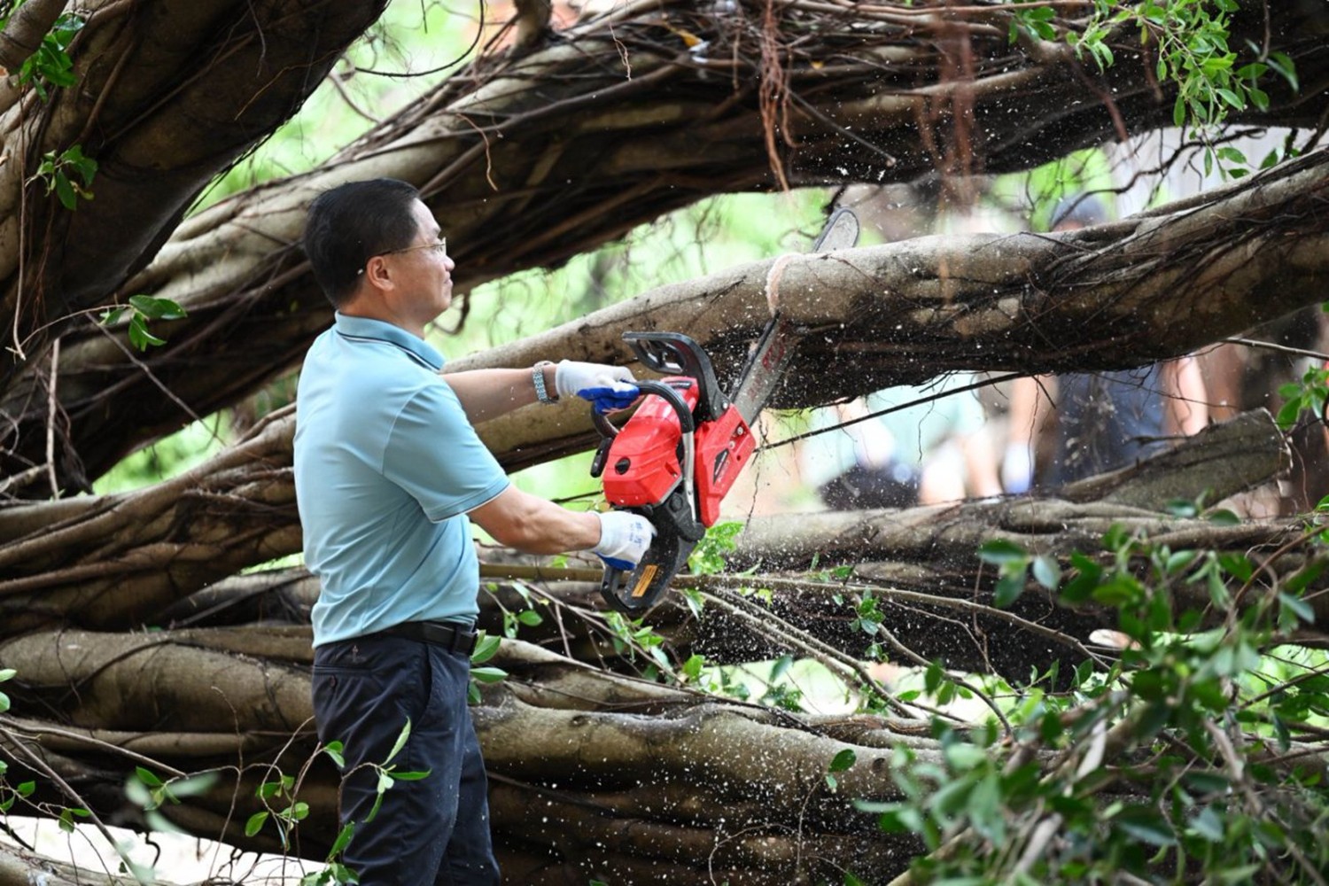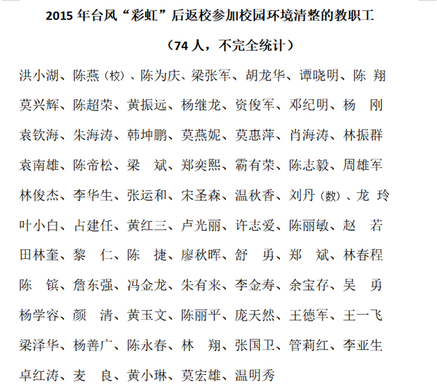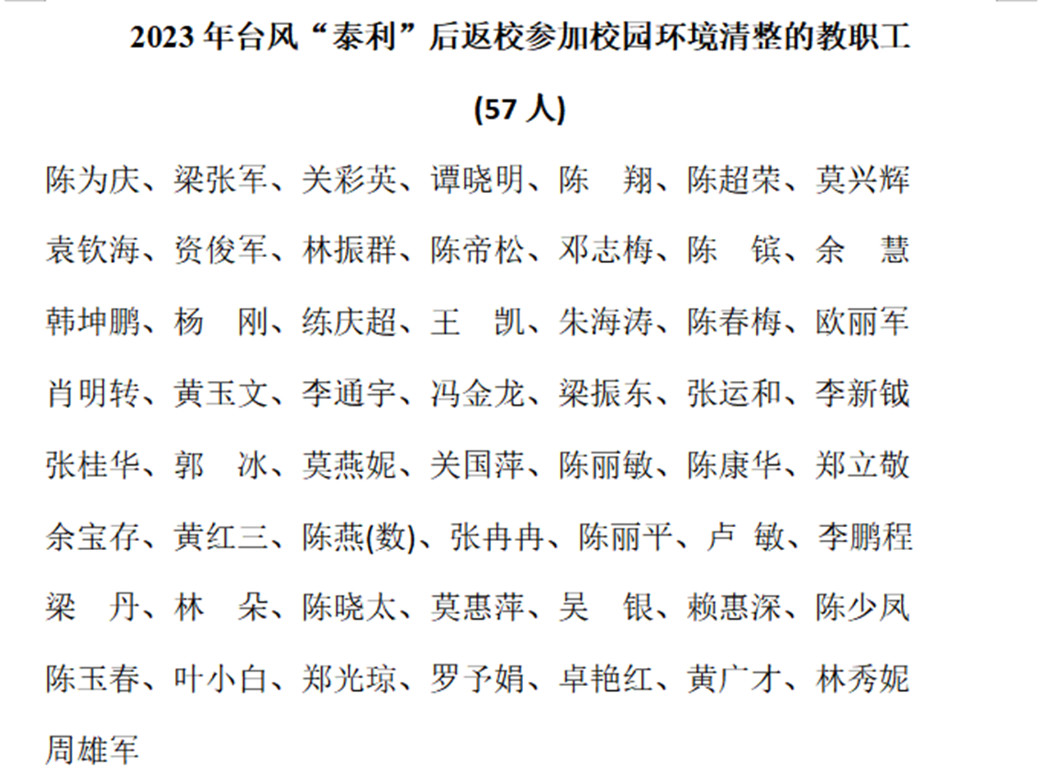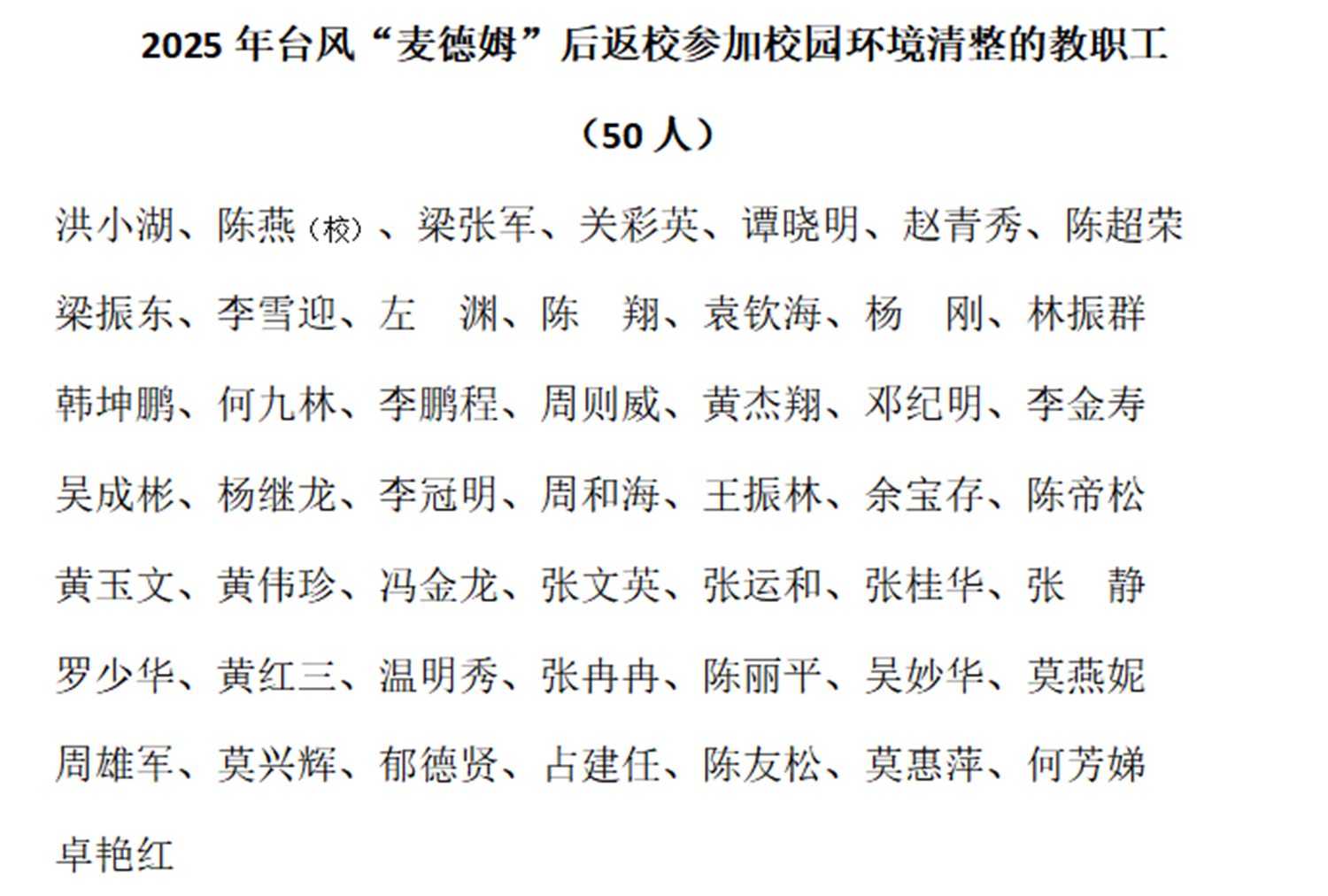 数棵大榕树被连根拔起,伏倒在地,如同大地的伤口。灾难留下的,不只是狼藉,更有挺身而出的身影。10月6日,从郑建忠总校长到后勤工作人员,近百人的队伍,从清晨到夜幕降临,砍、锯、扛、扫,用双手和汗水,为学校尽快恢复正常的教育教学秩序提供了保障。