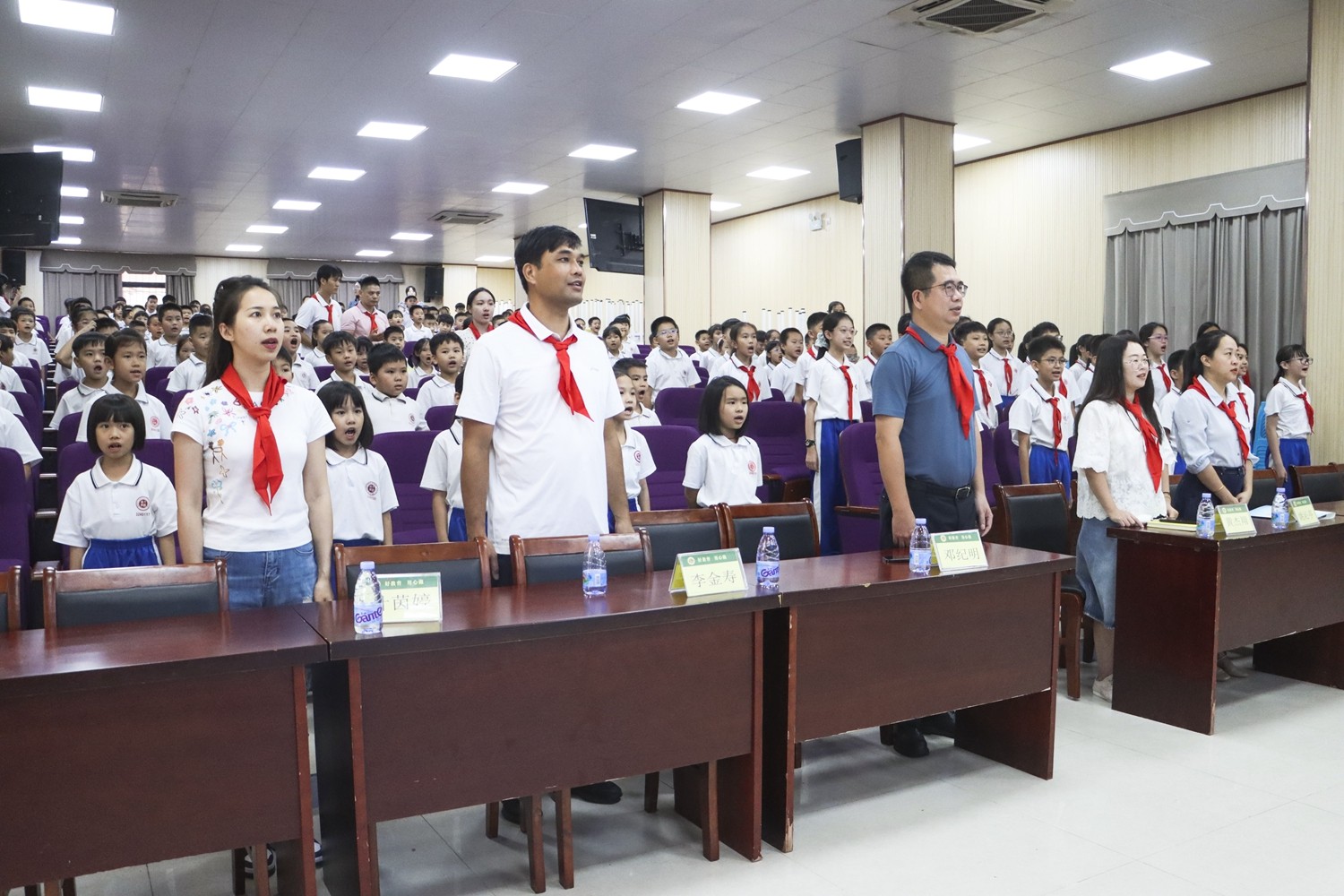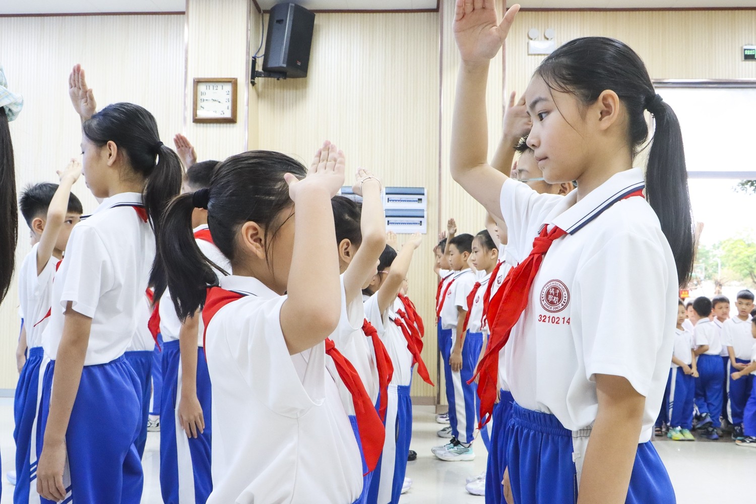 2025年10月13日,我校小学部隆重举行以“强国复兴有我,争当新时代好少年”为主题的二年级新队员入队仪式。小学部黄杰翔校长、姚沁亭书记、邓纪明主任、李金寿主任、叶茵婷主任、杨柳菲辅导员等领导出席仪式,共同见证这一庄严时刻。