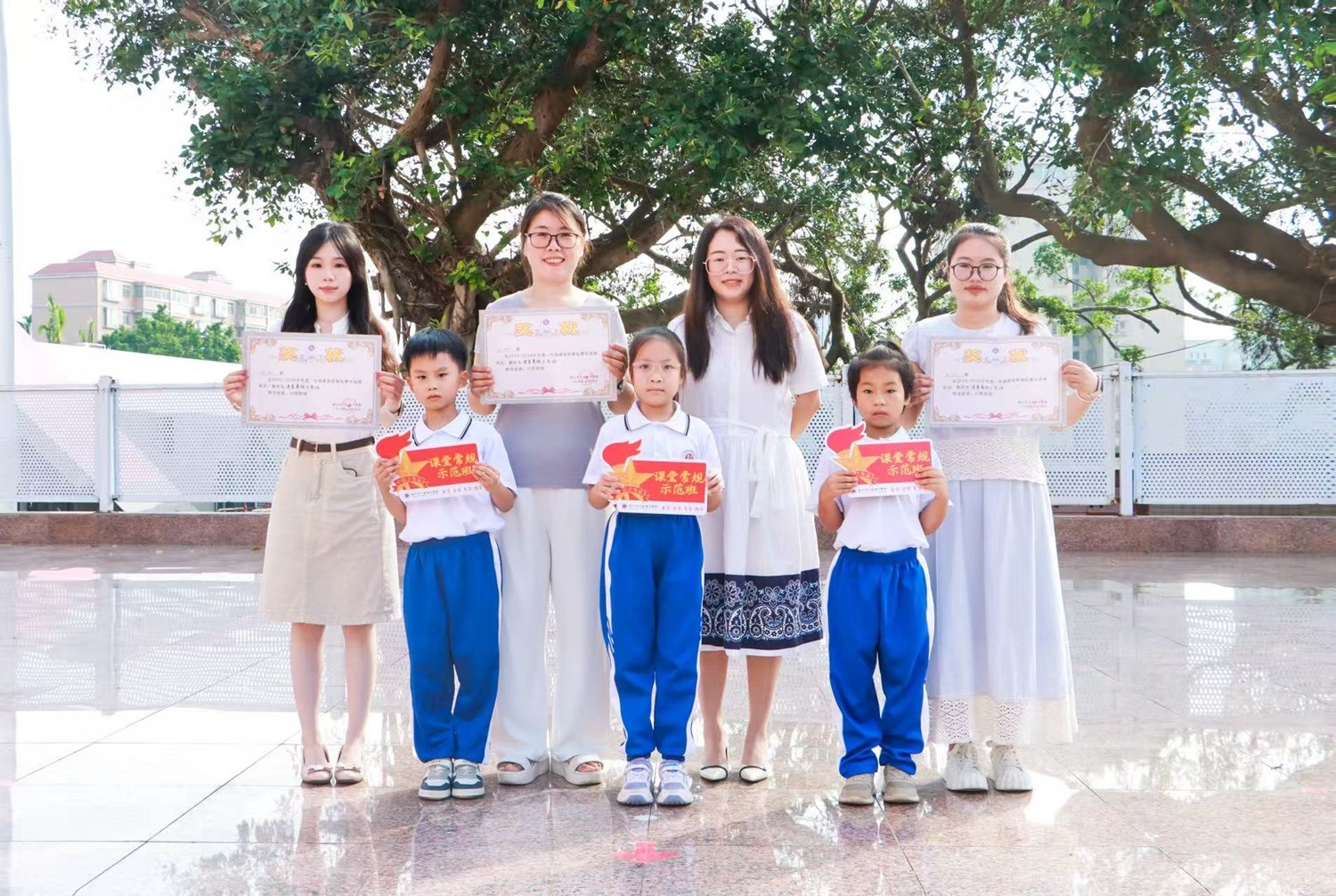 比赛尾声,关彩英副校长对各班表现进行点评,肯定了孩子们的努力与进步;李雪迎副校长宣读成绩,最终评选出 3 个“课堂常规示范班”和 3 个“课堂常规优秀班”,黄杰翔校长现场颁发奖状,获奖班级的孩子们欢呼雀跃,脸上绽放出灿烂的笑容。