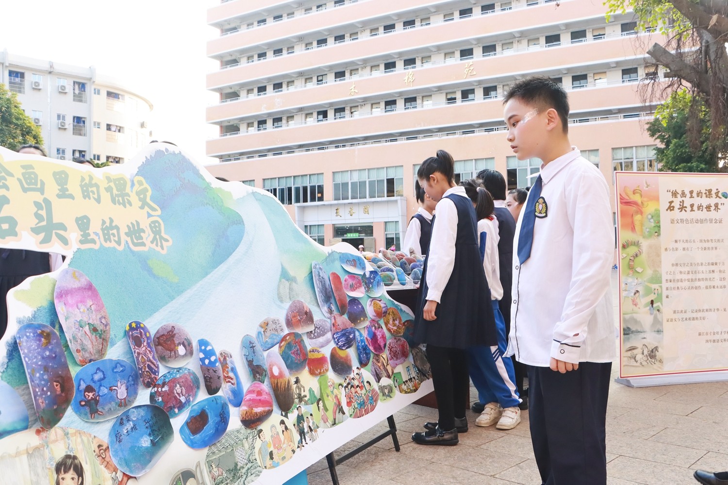当一块块绘制完成的石头整齐陈列,一个微型的“课文美术馆”就此落成。这场活动远不止于一次美术创作,它是一次深度的语文学习——孩子们在构图时反复咀嚼文字,在调色中体会情感基调,在呈现时重构审美意境。学科壁垒在趣味实践中悄然消融,核心素养在动手创造中自然生长。