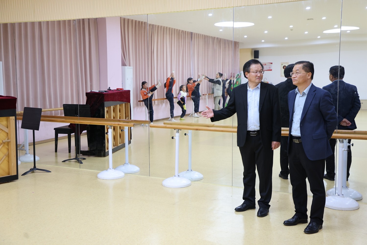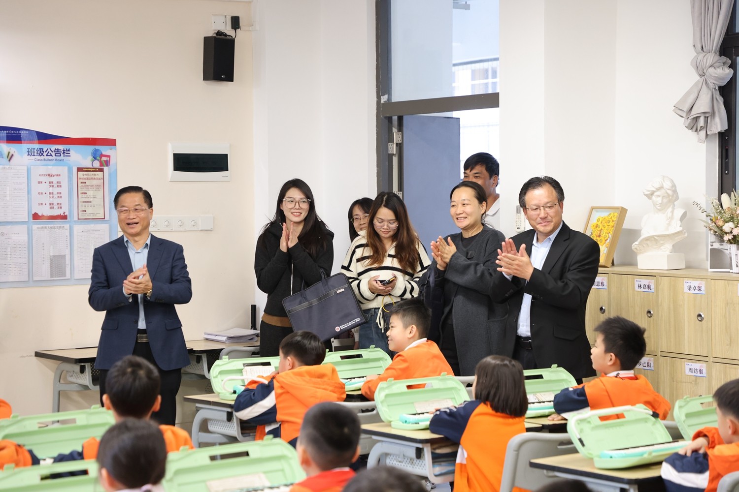 孙定国副校长及各级行政领导带领我校老师参观校园。