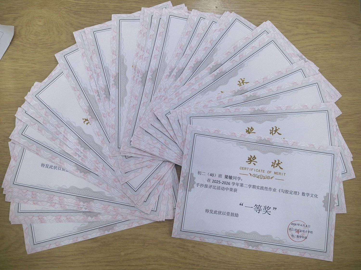 本次勾股定理数学项目式作业活动虽已落幕,但它播撒下的数学种子正在同学们心中生根发芽。活动不仅锻炼了同学们的空间想象力、逻辑思维能力和动手操作能力,更培养了不畏难题的创新精神和合作共赢的团队意识。总之,数学是探索世界的重要工具,其魅力远不止于课堂。希望同学们能继续保持这份对数学的好奇与热爱,在未来的学习道路上,继续以思考为舟,以创意为帆,在更广阔的知识海洋中勇敢航行!