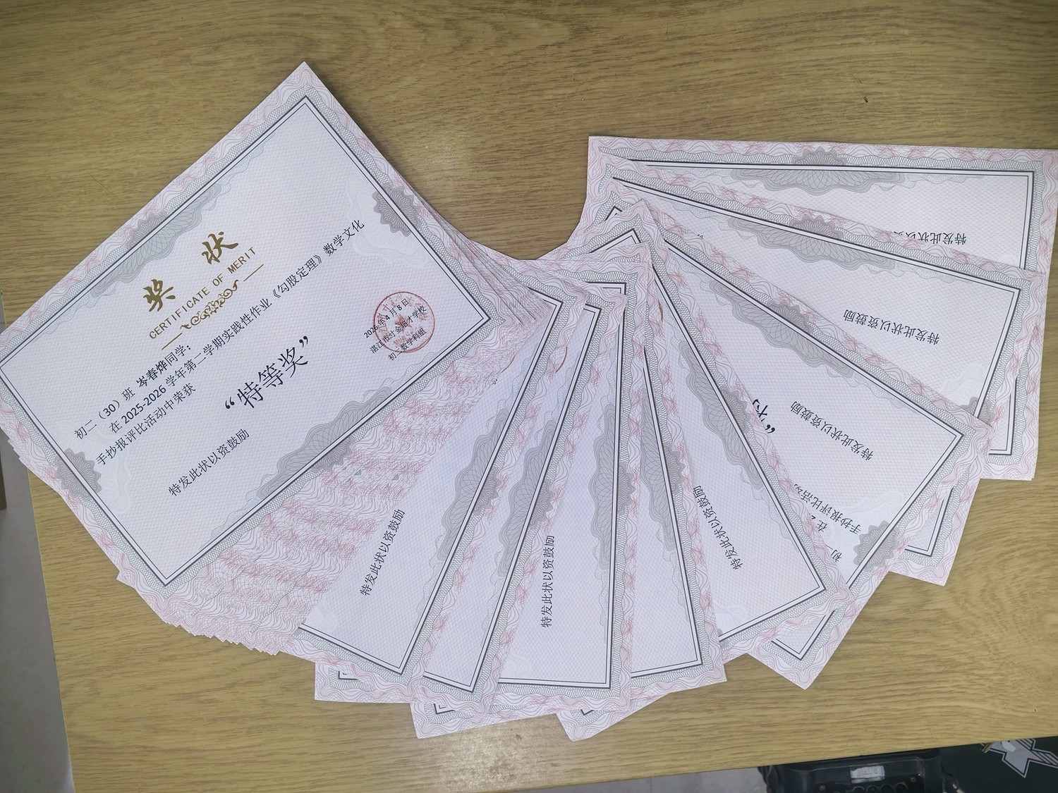 目前,优秀作品已在宣传栏进行集中展示,吸引了众多师生驻足观看。年级组希望通过此次展示,激励全体同学在今后的学习中继续用好奇之心探索数学奥秘,用理性之笔描绘精彩未来。精彩展示如下:
