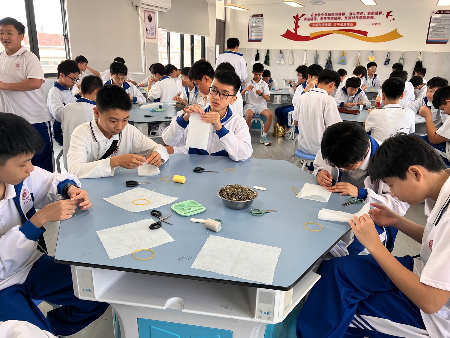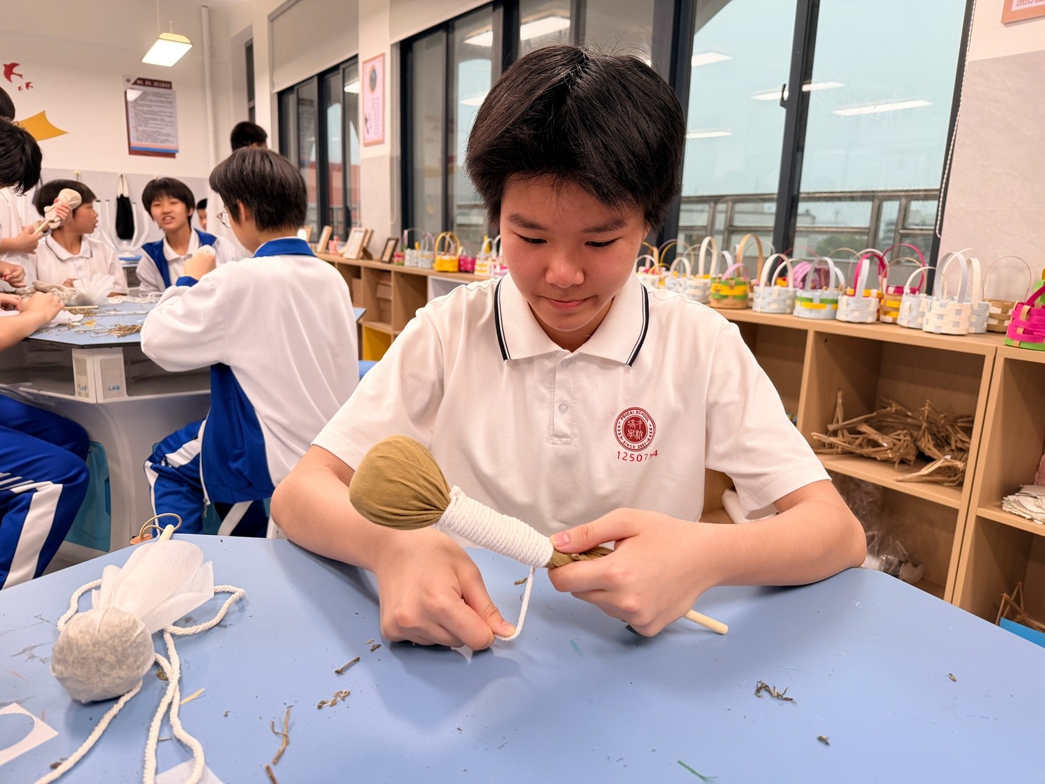 劳动赋能成长,实践浸润素养。为扎实推进新时代劳动教育,让学生在动手实践中习得生活本领、亲近传统民俗,湛江市寸金培才学校初一年级劳动课堂开展基础缝纫学习与艾草锤手工制作特色项目活动,融技能练习、动手创作、文化科普于一体,让劳动课堂变得鲜活又有温度。