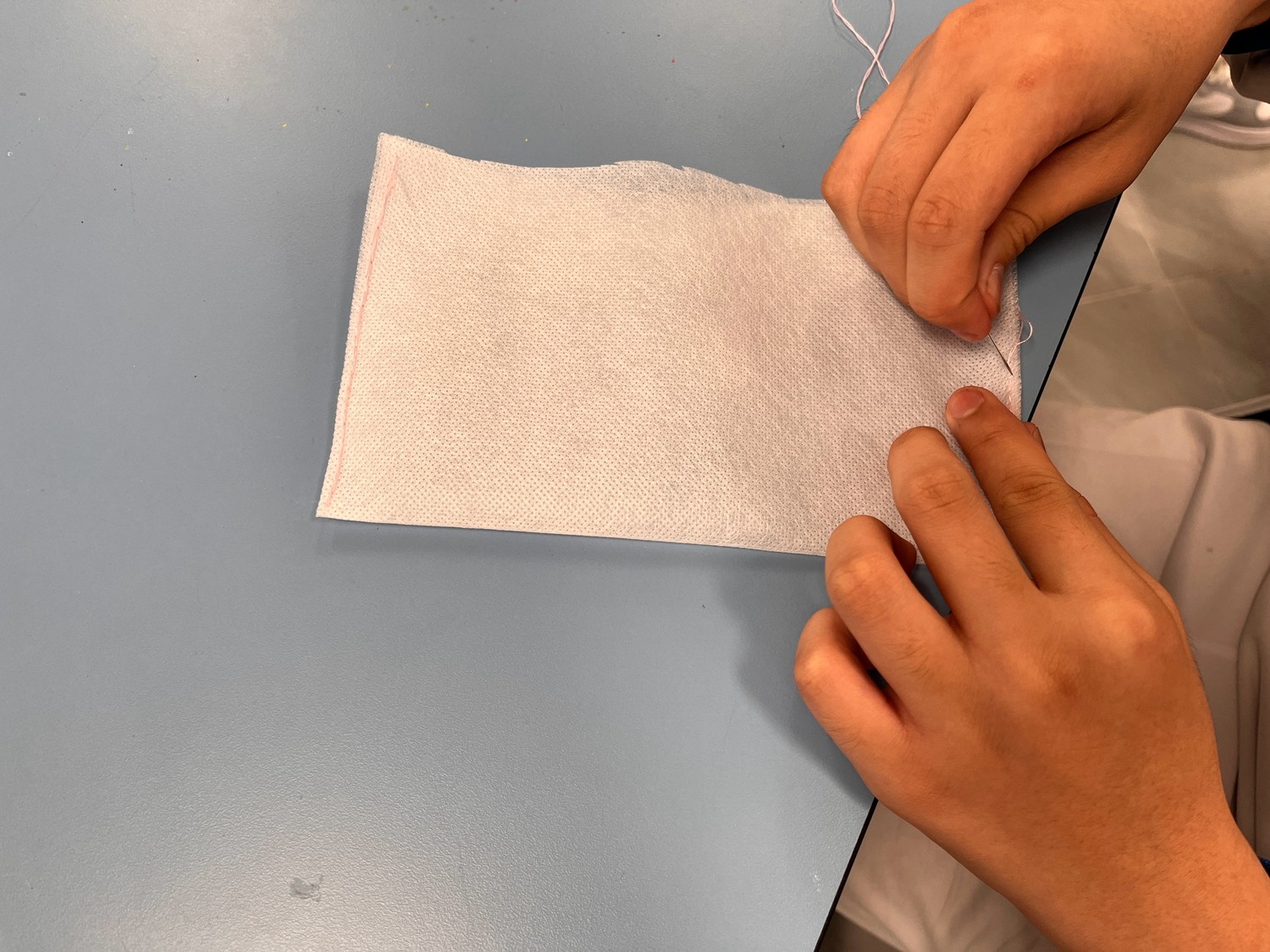 针脚藏巧,习得缝制技艺。打好基础后,缝纫学习循序渐进深入。课堂以平针法、回针法两种经典基础针法为例,老师细致拆解走线节奏、针脚间距,对比讲解不同针法的特点与用途。平针走线舒展自然,操作简单易上手;回针缝合紧实牢固,实用性更强。熟悉针法要领后,同学们领取布料材料,动手缝制简易小布袋。一针一线认真走线,专注调整细节,专注投入的模样尽显认真。从零散布料到成型小口袋,亲手完成作品的过程,不仅提升了动手协调能力,也让大家收获满满的劳动成就感。
