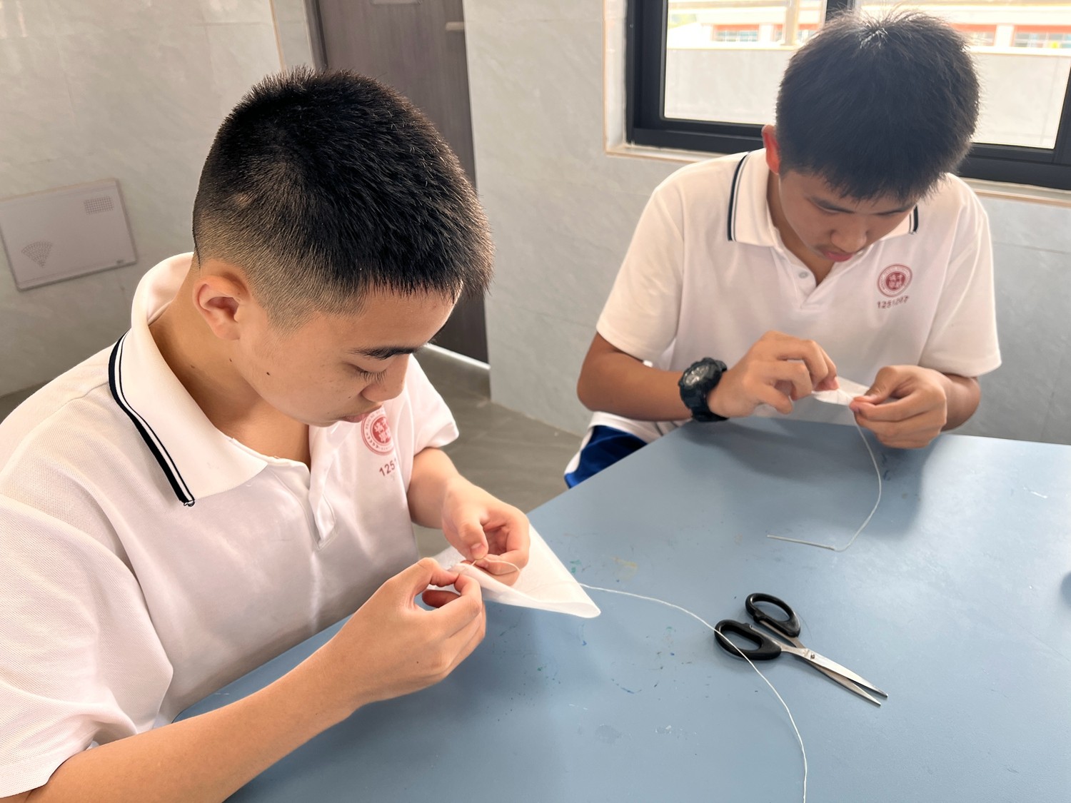 针线为媒,筑牢劳动基础。课程从日常生活必备技能切入,大多数同学们从零学习穿针引线。看似简单的动作,却十分考验耐心与细心。同学们认真观摩示范,慢慢拿捏手法,反复练习穿线、绕线、打结等基础操作。遇到操作难题时,互帮互助、共同探讨,在一次次练习中克服生疏,熟练掌握基础缝纫小技巧,真切体会到每一项生活技能背后的用心与坚持。