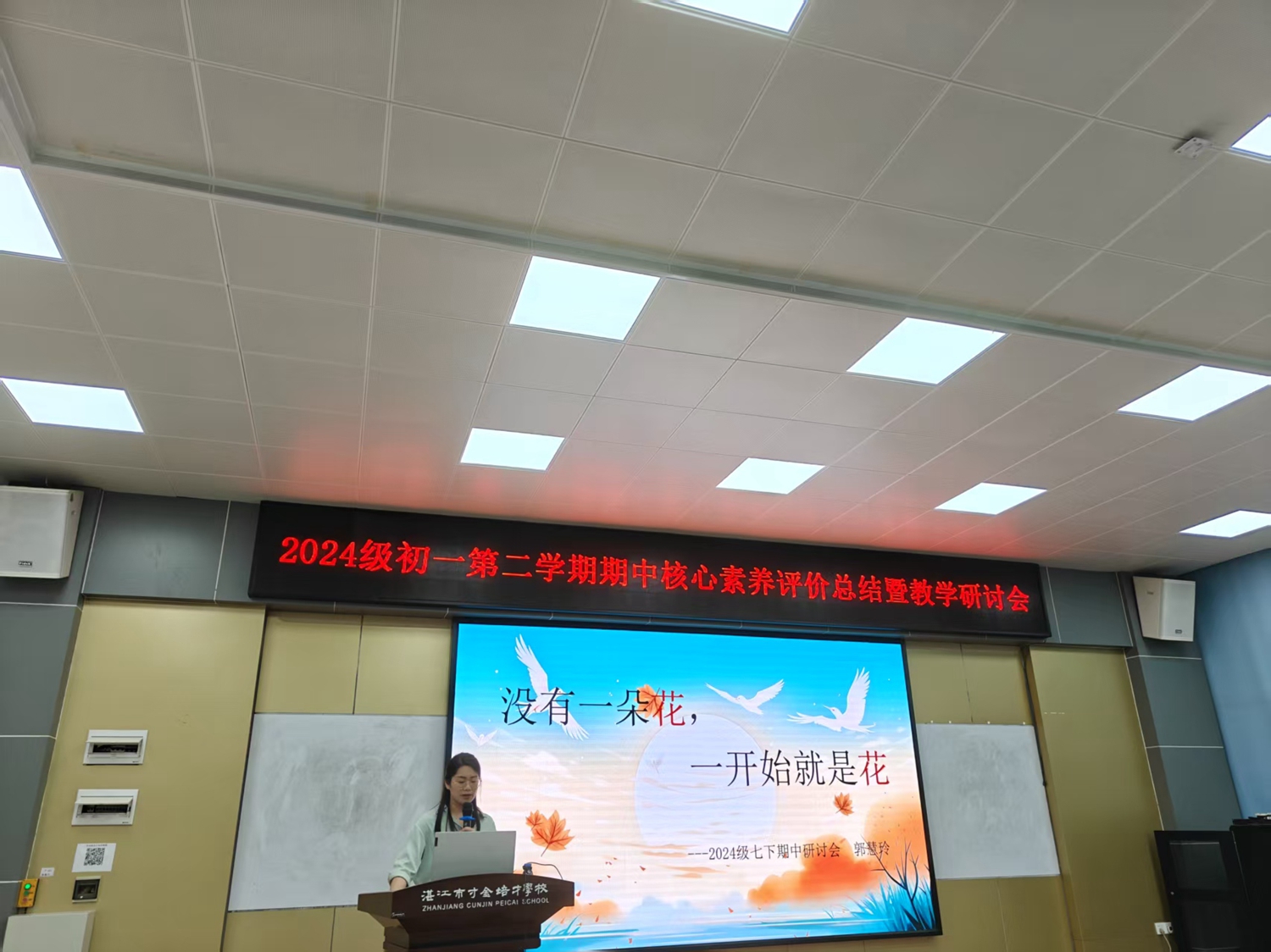 为全面总结教育教学经验,精准把脉学情,优化教学策略,初一年级于4月29日晚七点半在学术报告厅顺利召开第二学期期中核心素养评价总结暨教学研讨会。陈燕副校长及初一级全体老师出席了本次会议,会议由梁荣杰副级长主持。