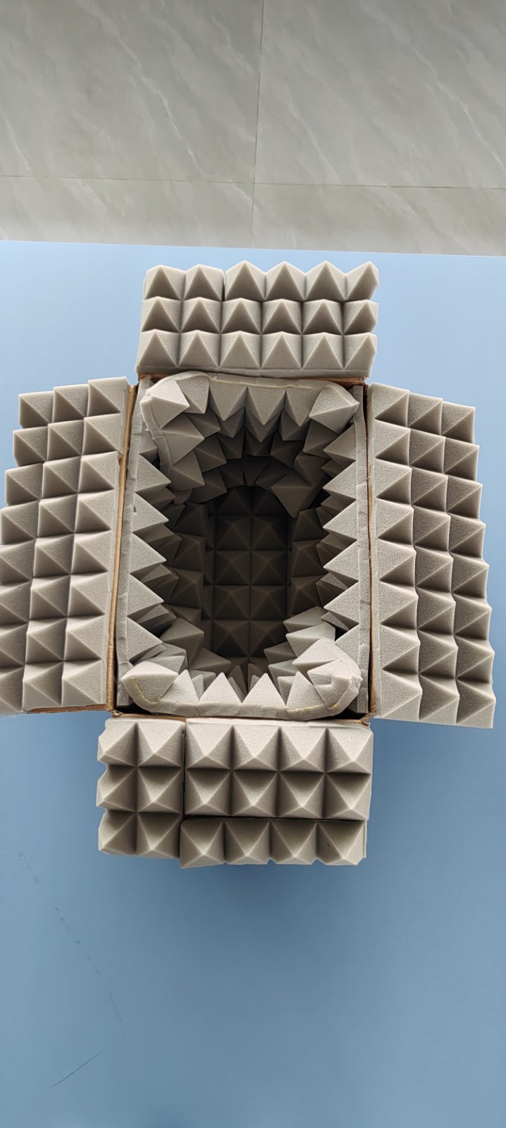 本次活动展现了变废为宝,科学原理融入实践的理念。为达成最佳的隔音效果,同学们各显神通。常见的旧报纸、废旧毛巾、快递缓冲泡沫、专业隔音棉等材料,成为了他们构建“静音堡垒”的秘密武器。在实践报告中,学生们清晰地阐释了其背后的科学原理:蓬松的毛巾和泡沫主要通过其多孔结构来吸收声波的能量,将声音“困”在材料内部的微小空隙中,从而减弱反射;而密度较大的纸板和多层结构,则能有效地阻挡声音的传播,起到隔断声波的作用。(部分模型内部如下图)