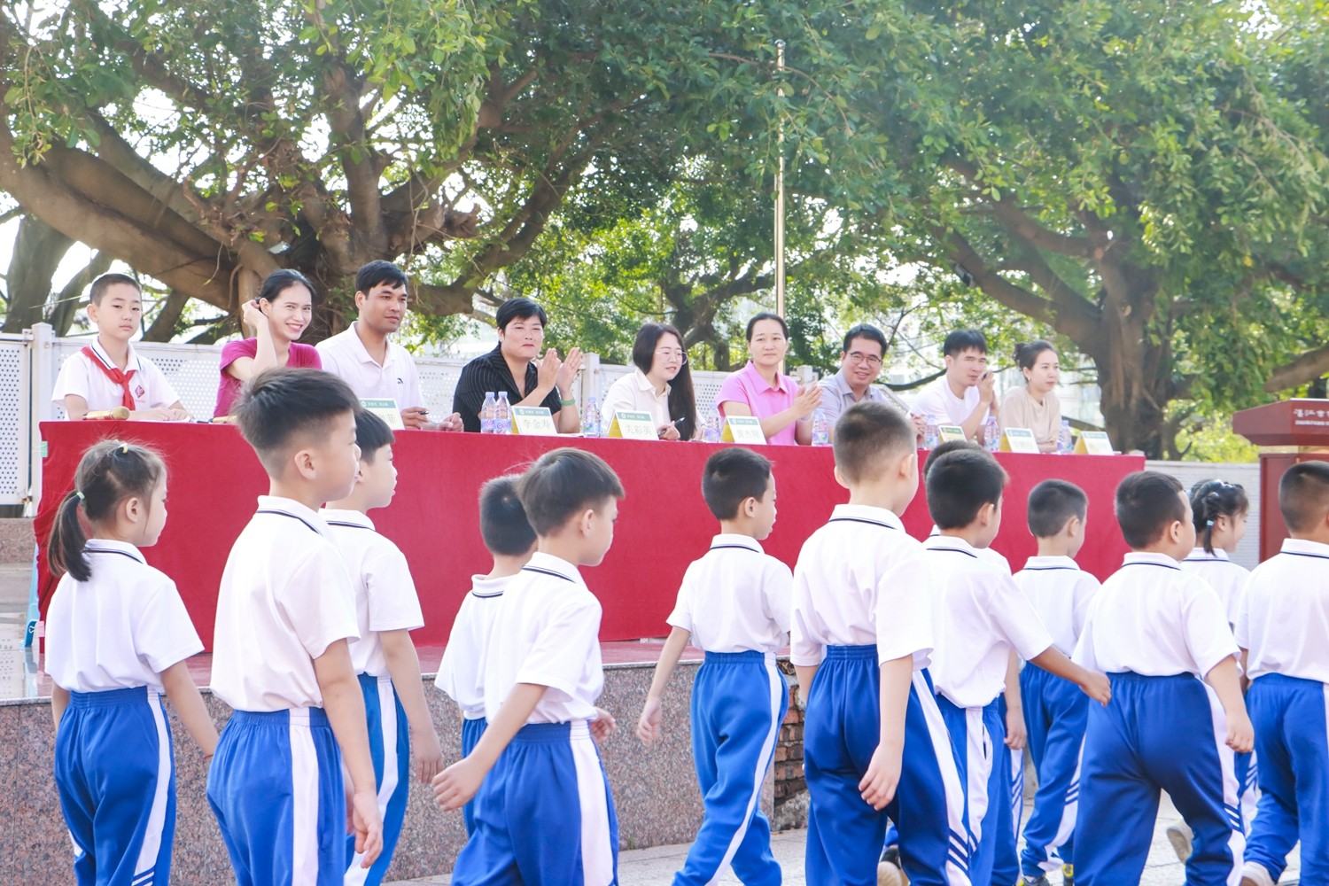 比赛伊始,主持人热情开场并介绍领导评委团,小学部黄杰翔校长为比赛致辞,鼓励孩子们在展示中收获成长,在规范中养成习惯。随后,各班按序登场,从路队展示到下课礼仪,每个步骤都环环相扣,处处洋溢着一年级学生的活泼朝气。