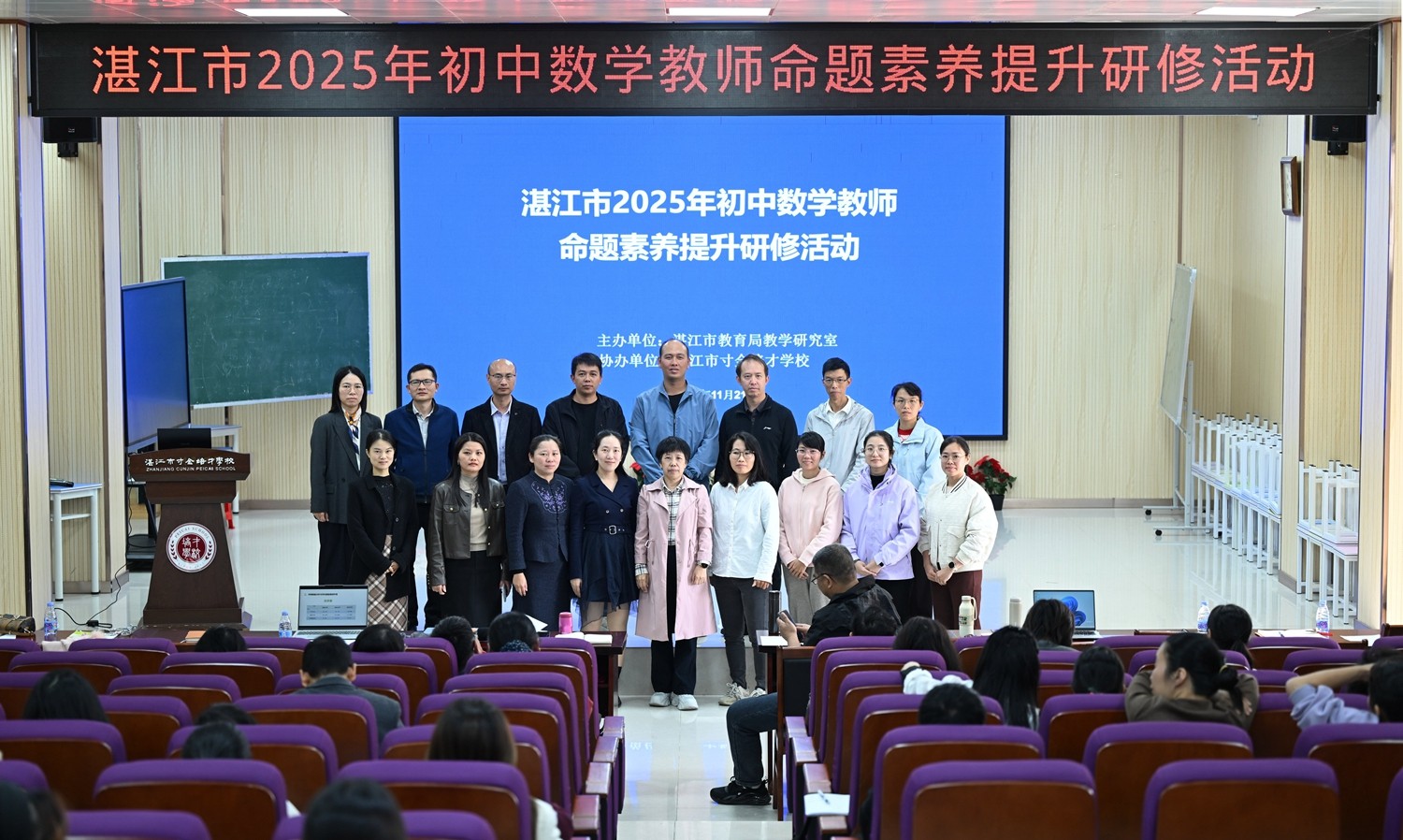 2025年11月21日,湛江市2025年初中数学教师命题素养提升研修活动在湛江市寸金培才学校圆满落幕。本次活动由湛江市教育局教学研究室主办、湛江市寸金培才学校协办,全市近250名初中数学骨干教师齐聚一堂,共探命题创新路径,共研教学提质良方。