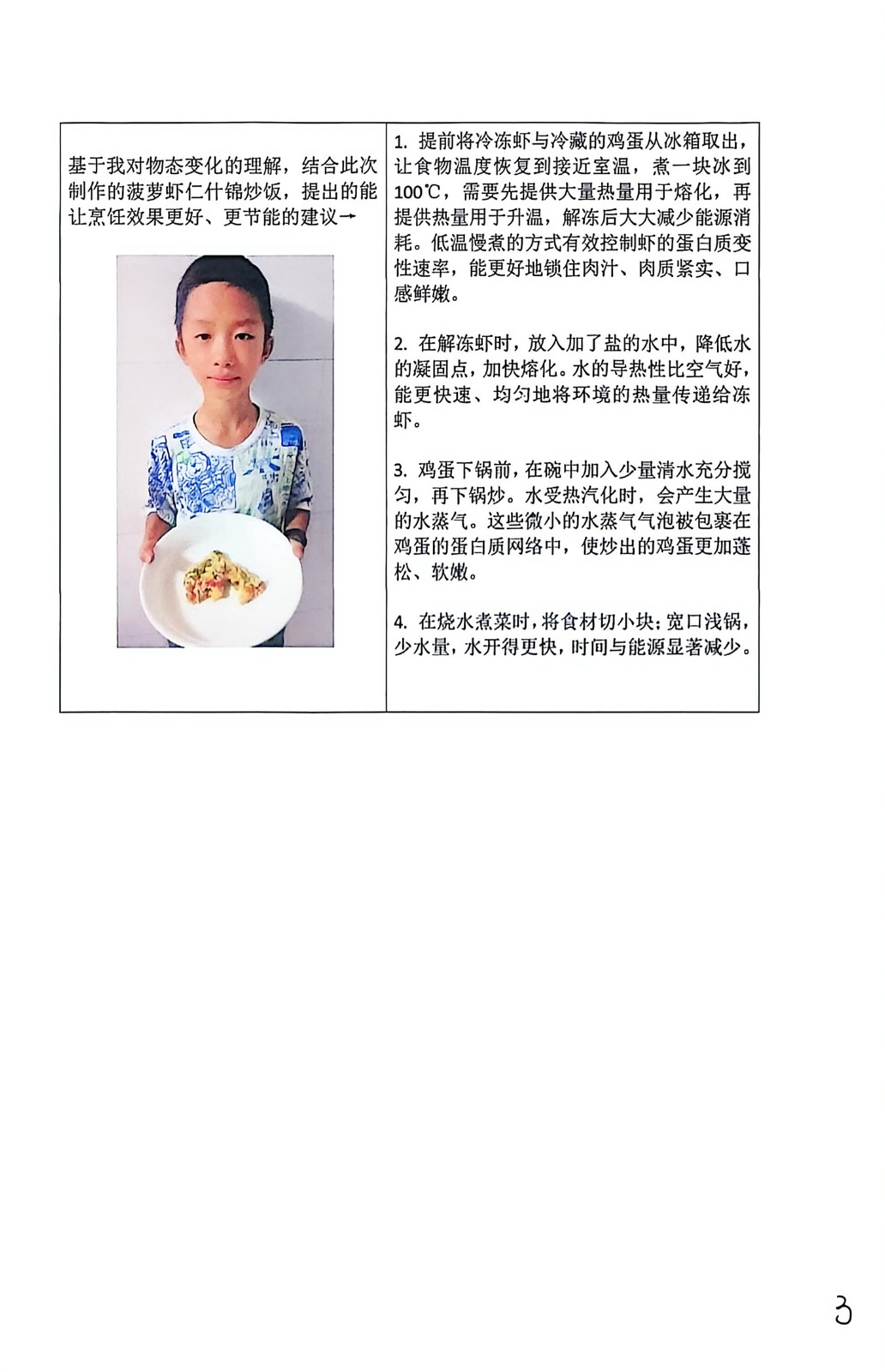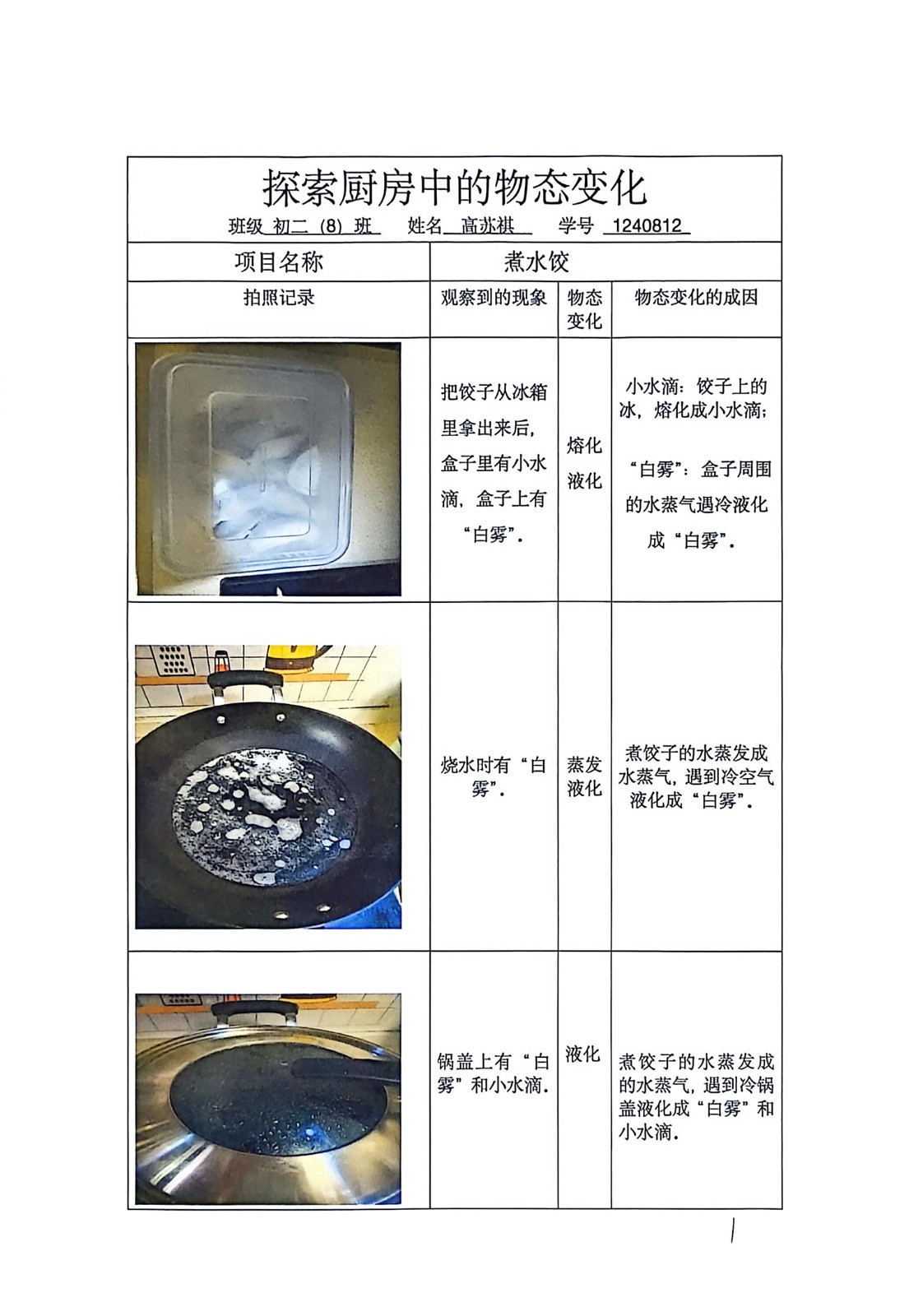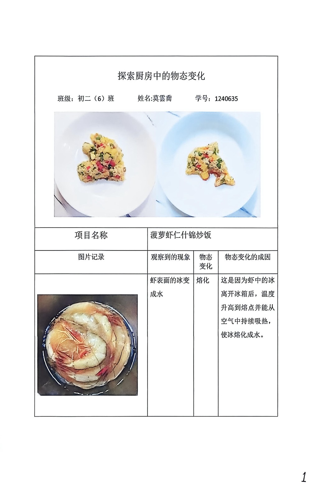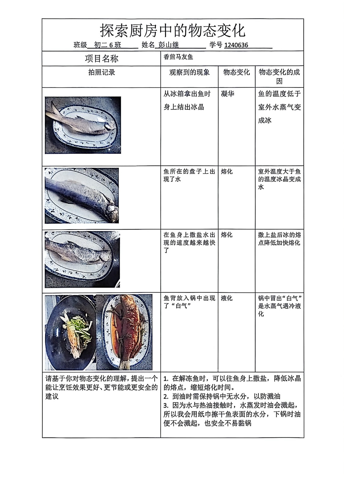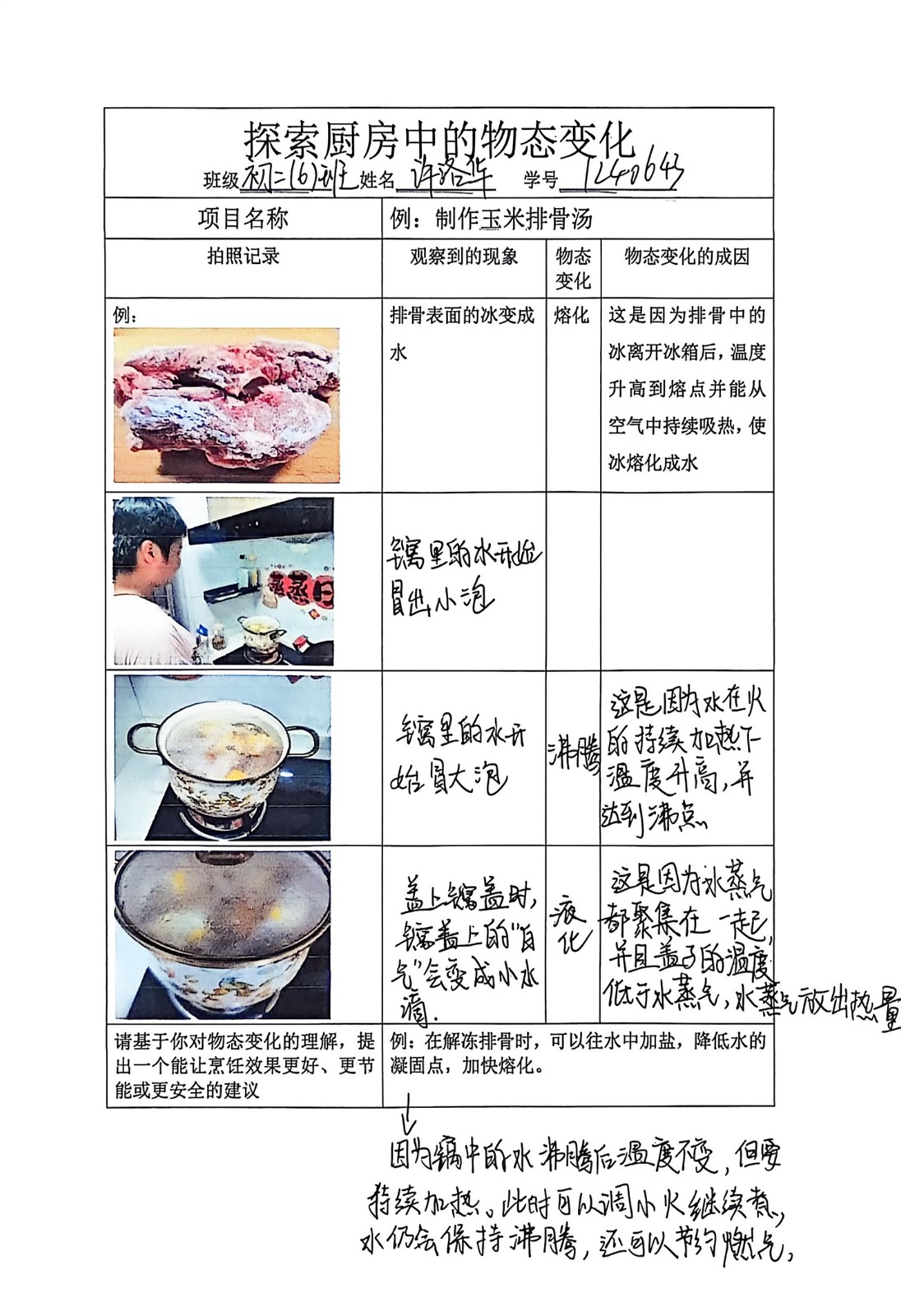近日,我校初二物理科组举办的一场以“跨学科实践:探索厨房中的物态变化”为主题的跨学科实践活动比赛圆满落幕。活动以家庭厨房为实践阵地,引导学生在烹饪的烟火气中观察物理现象,用镜头记录物态变化瞬间,以实践报告梳理知识脉络,让抽象的物理概念在生活场景中落地生根。