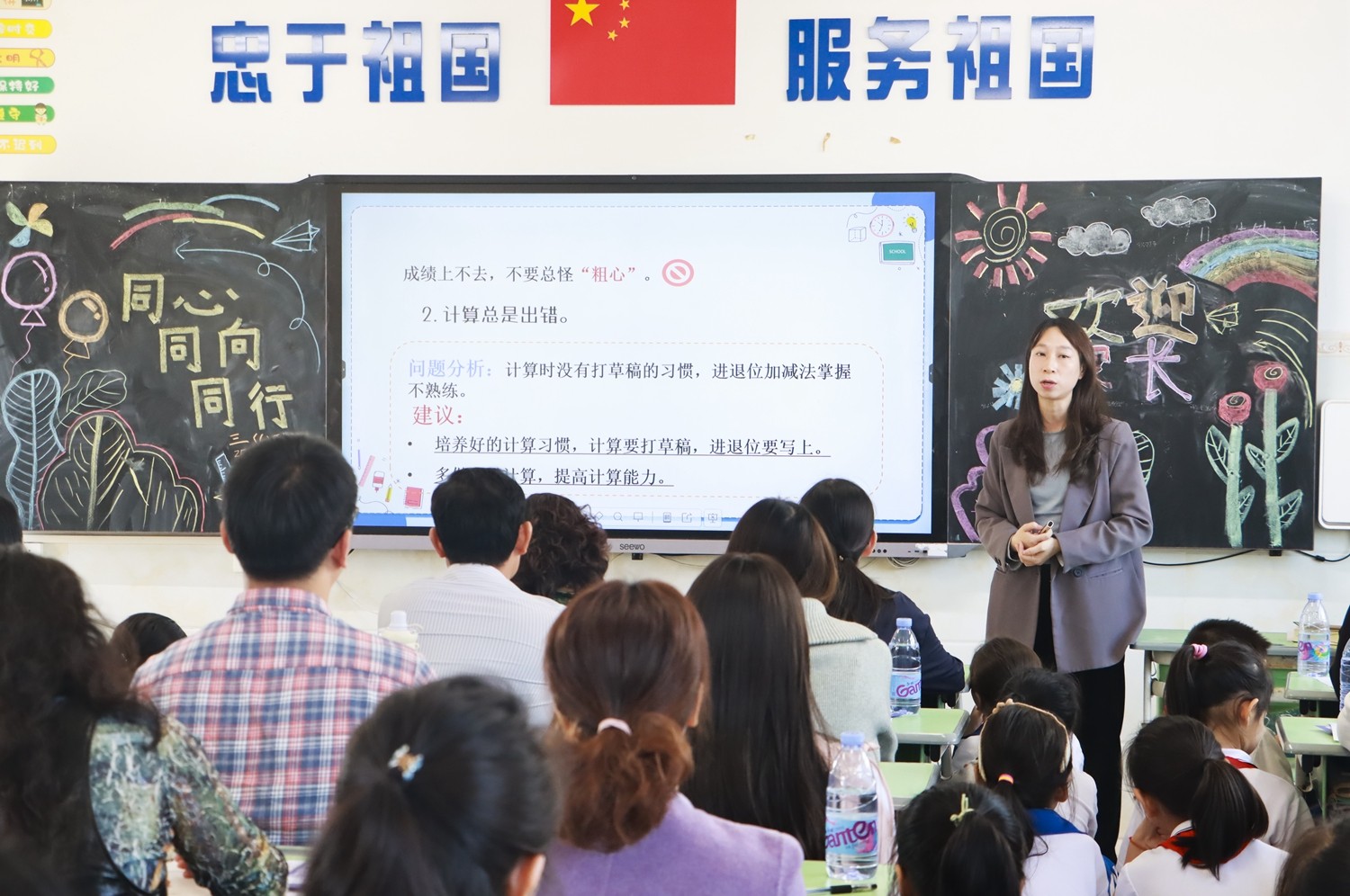 三年级老师围绕学科学习重点、班级管理规划及学生成长特点展开分享,细致反馈孩子在校表现。家长们积极交流育儿经验,就关注问题深入沟通。