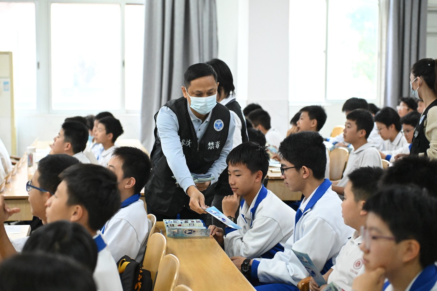 活动的最后环节,学生们有序排队观看毒品样品,交流学习心得,将禁毒知识延伸至课堂之外。学校领导、禁毒专员与学生代表合影留念,为本次活动画上圆满句号。