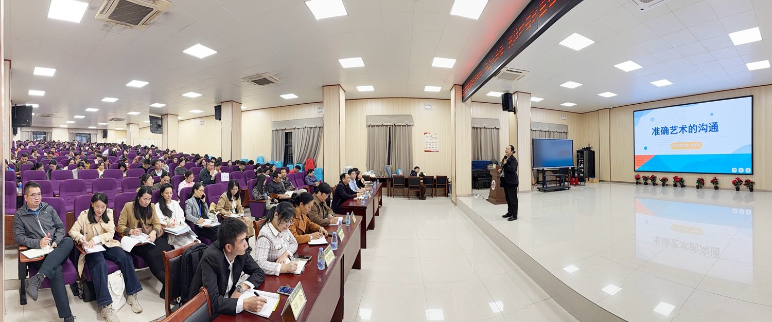 为深入推进班主任队伍专业化建设,切实提升教师育人沟通艺术与家校协作能力,12月18日晚,我校特邀岭南师范学院省级中小学教师发展中心副主任、广东省中小学名班主任工作室主持人张妙龄女士莅临我校,开展题为《准确艺术的沟通》专题讲座。本次活动由学校德育处联合湛江市詹福艳名教师工作室、刘全名教师工作室、李金寿名教师工作室以及贾莉敏名班主任工作室共同举办,我校全体班主任及三名工作室成员积极参与学习。