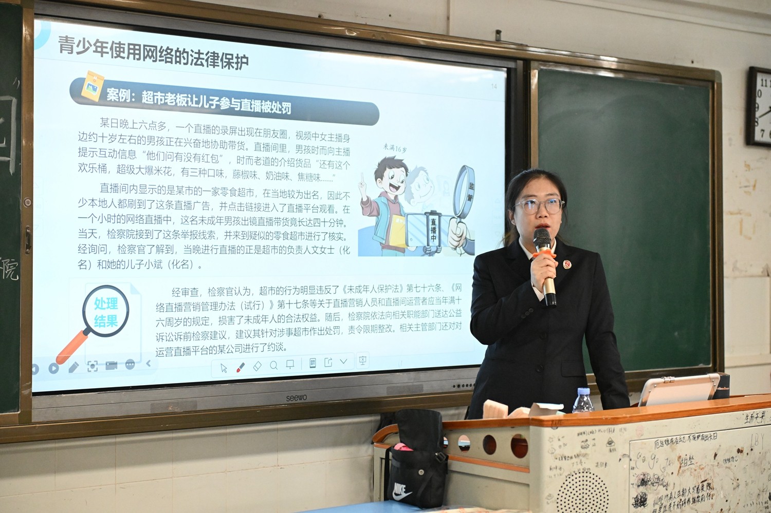 检察官们结合青少年的身心特点和认知规律,通过真实案例剖析,围绕校园欺凌、诈骗、盗窃等违法犯罪行为进行详细讲解。课堂上,同学们专注聆听,积极参与互动环节,现场气氛热烈而有序。