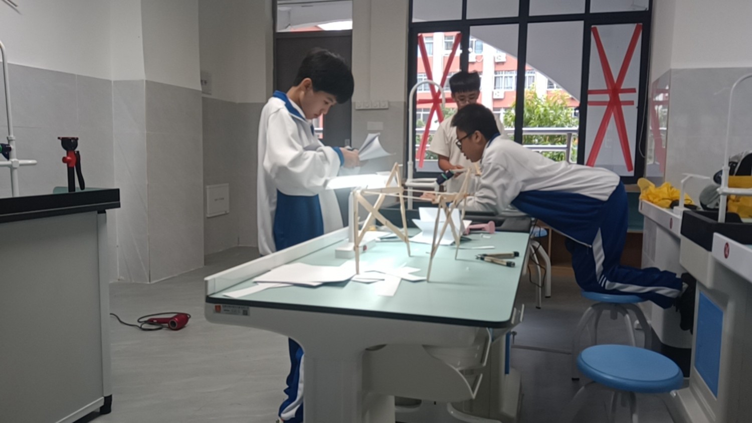 在历时两个月的备赛过程中,四位同学展现了超越年龄的毅力和钻研精神。莫哲涵、黄恒旭同学主动查阅机械设计、流体力学等相关专业资料,针对模型受力平衡、风力转化效率等难点,反复拆解分析、优化方案。他们与指导老师、团队成员进行多次头脑风暴,从材料选型到叶片角度调整,历经十余次模型迭代,逐步完善作品。林叶敏、李何凡同学则以严谨态度负责模型组装调试与数据记录,精准把控每一处细节,为模型的稳定运行提供了可靠保障。备赛期间,四人团结协作、资源共享,在互助与竞争中共同成长,展现了我校学子善于合作、勇于突破的精神风貌。