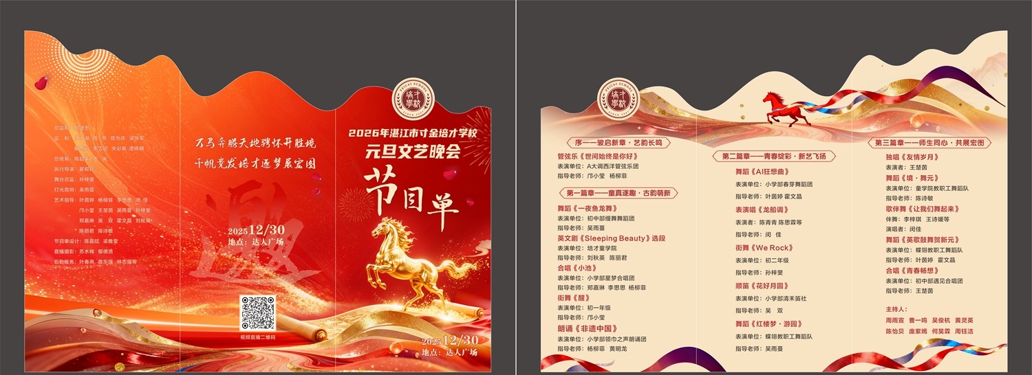 万马奔腾天地骋怀开胜境,千帆竞发培才逐梦展宏图。12月30日晚,我校在达人广场成功举办2026年元旦文艺晚会。小学部、初中部全体师生聚于星光之下,共启新岁华章。