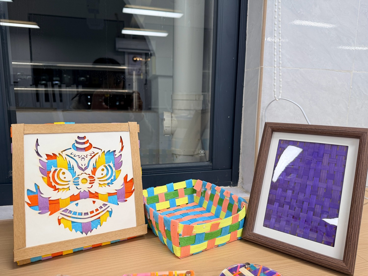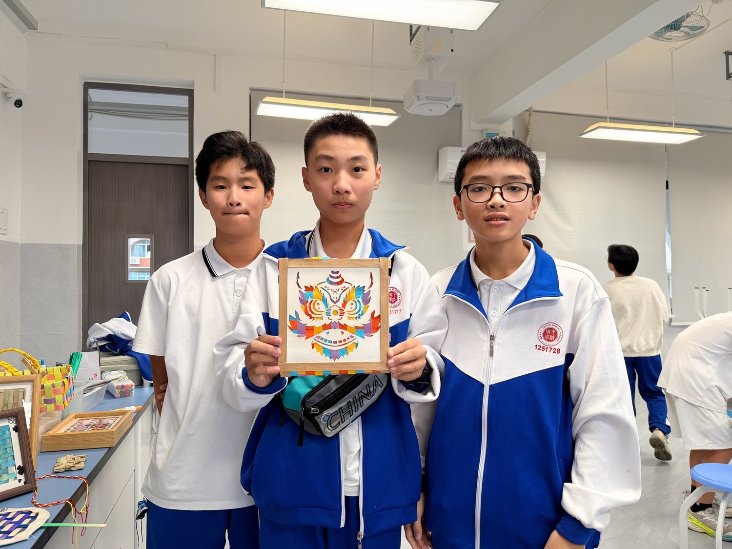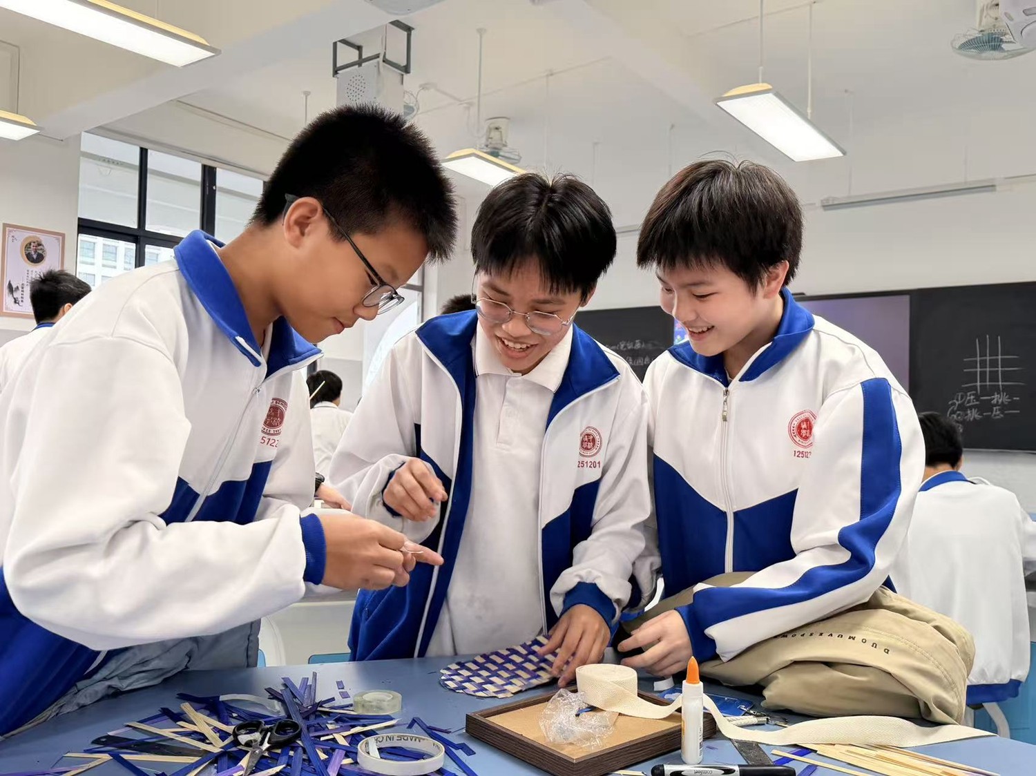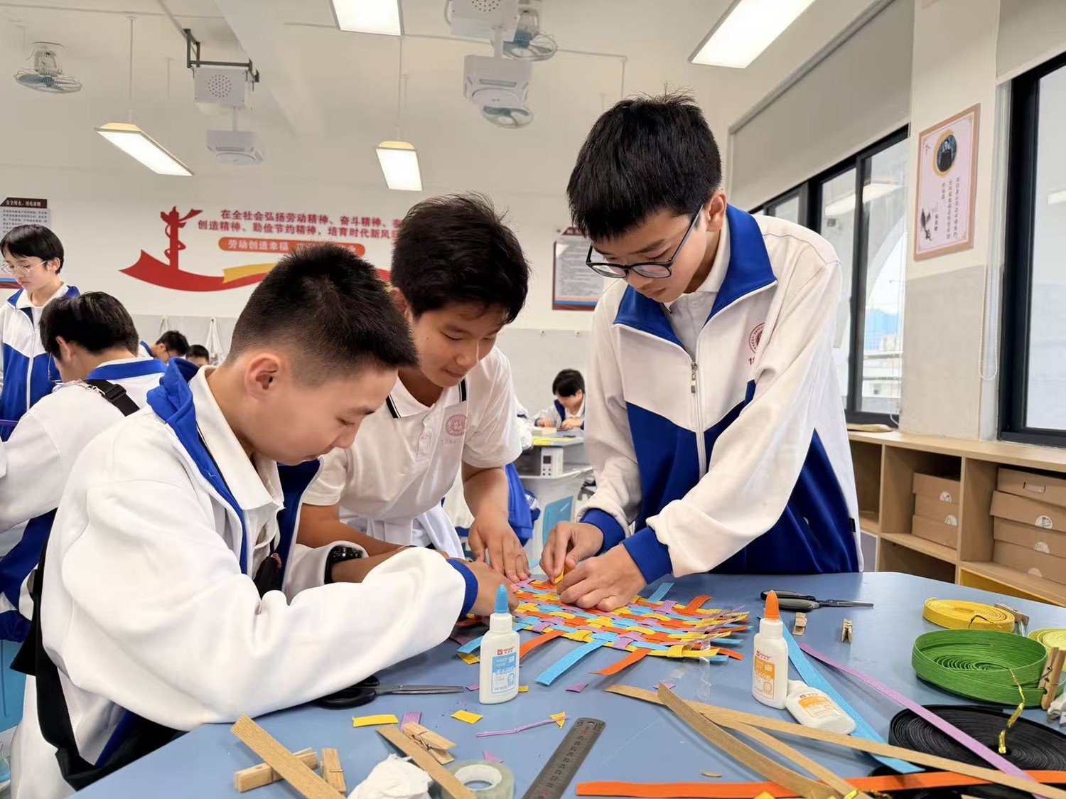 活动现场氛围热烈而有序。在初一 1至17班的编织赛场中,选手们手指灵活穿梭于彩绳和编织带之间,挑、编、绕、结等动作娴熟流畅。在规定创作时间里,同学们制作出各具特色的编织作品,既有精致的贴画,也有实用的小摆件等。创作过程中,大家耐心专注,互帮互助,在经纬交织中体悟手工技艺的魅力,感受劳动带来的成就感,充分展现了精益求精的工匠精神。