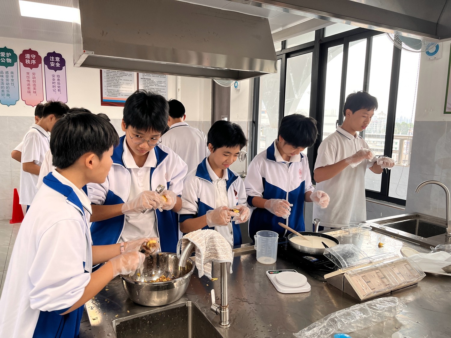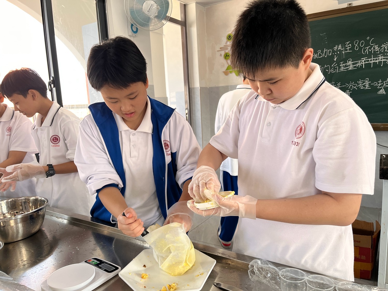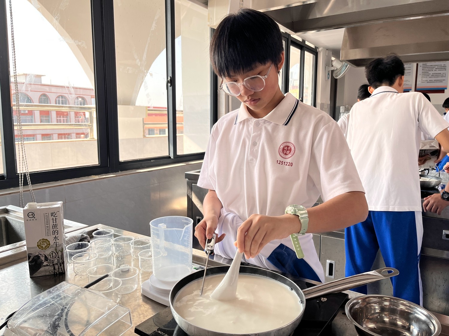 湛江市寸金培才学校劳动烹饪室内香气四溢,初一年级的同学们在劳动课程中沉浸式体验广式传统甜品姜撞奶的制作技艺。这场融合美食文化与劳动实践的课堂,让同学们在烟火气中感受劳动乐趣。