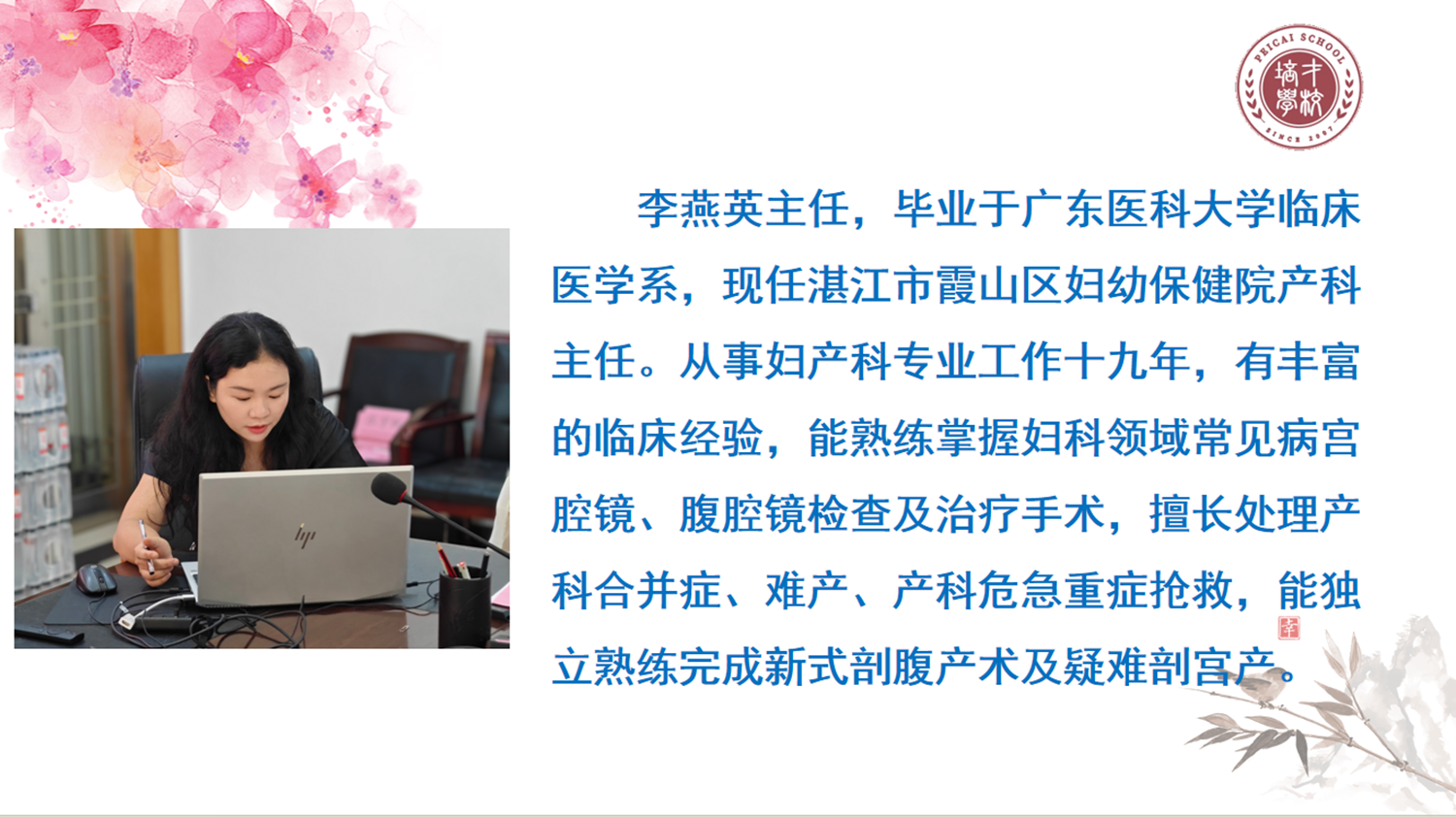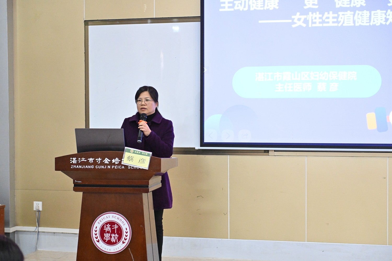 为切实关爱女教职工身心健康,提升女教职工健康防护意识与自我保健能力,1月13日,我校特邀湛江市霞山区妇幼保健院蔡彦主任和李燕英主任进校开展守护女性健康专题活动。全校女教职工齐聚宁远楼201会议室,在温馨实用的知识分享中,收获专属健康指引。活动由学校办公室赵青秀副主任主持。