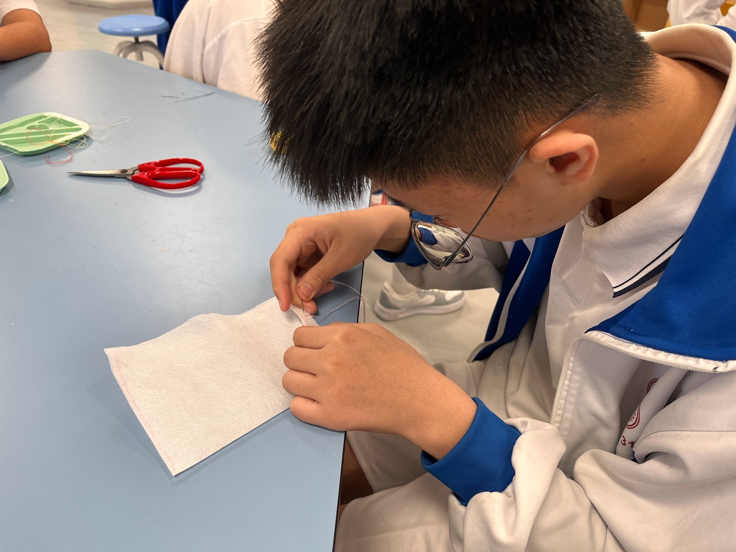 针线为媒,筑牢劳动基础。课程从日常生活必备技能切入,大多数同学们从零学习穿针引线。看似简单的动作,却十分考验耐心与细心。同学们认真观摩示范,慢慢拿捏手法,反复练习穿线、绕线、打结等基础操作。遇到操作难题时,互帮互助、共同探讨,在一次次练习中克服生疏,熟练掌握基础缝纫小技巧,真切体会到每一项生活技能背后的用心与坚持。