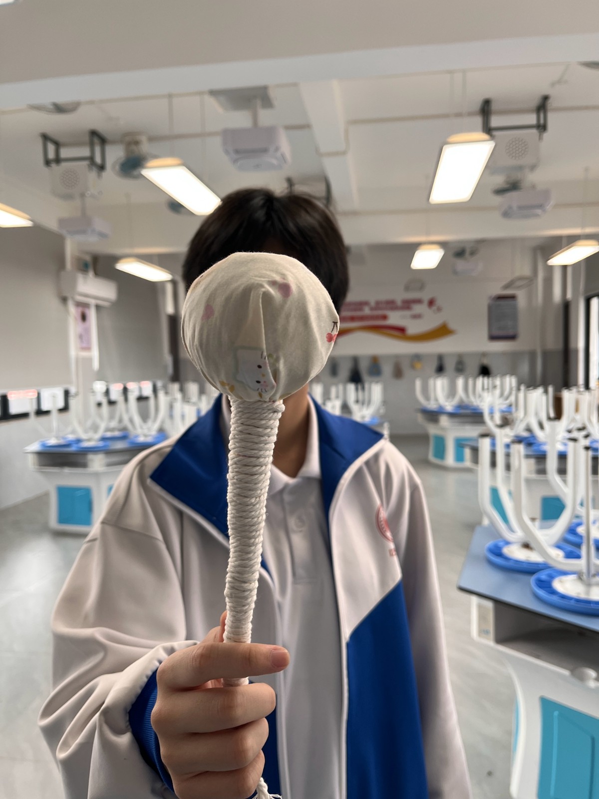 青艾寄俗,邂逅传统文化。时值暮春,艾草青绿,结合清明时节民俗底蕴,课堂特别增设艾草锤制作环节。老师结合时令,为同学们讲解清明采艾、用艾的传统习俗,科普艾草天然养生、舒缓身心的实用价值,解读民俗文化背后的人文内涵。淡淡艾香萦绕课堂,同学们有序动手整理干艾草,填充塑形、包裹固定、细心收口,有条不紊地完成艾草锤制作。一把亲手制作的艾草锤,兼具观赏性与实用性,既能舒缓肩颈疲惫,又承载着春日韵味与传统智慧。同学们在亲手制作的过程中,近距离感受传统民俗魅力,感受中华传统文化的独特韵味。