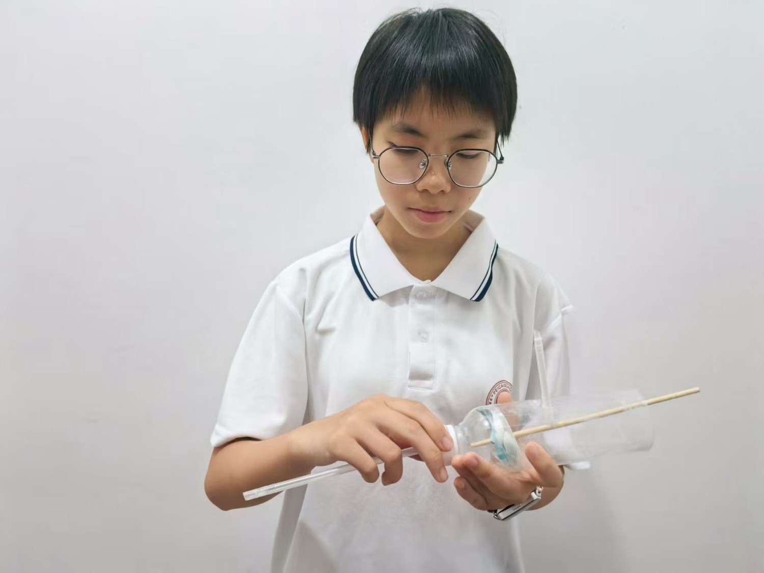 制作过程中,同学们全神贯注、分工协作。从裁剪瓶身、制作活塞,到连接吸管、密封接口,每一步都认真细致。面对漏水、气密性不足、抽水不畅等问题,大家不气馁、不放弃,反复调整结构、优化设计,在不断尝试中改进作品,充分展现了勤于思考、勇于探索的科学精神。