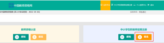3、选择“中小学在职教师定期注册”进行报名;