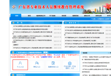 1、登录“广东省专业技术人员继续教育系统(https://ggfw.hrss.gd.gov.cn/jxjy/)”;